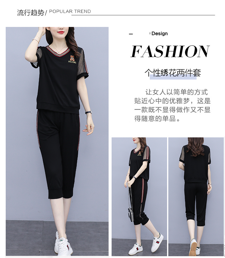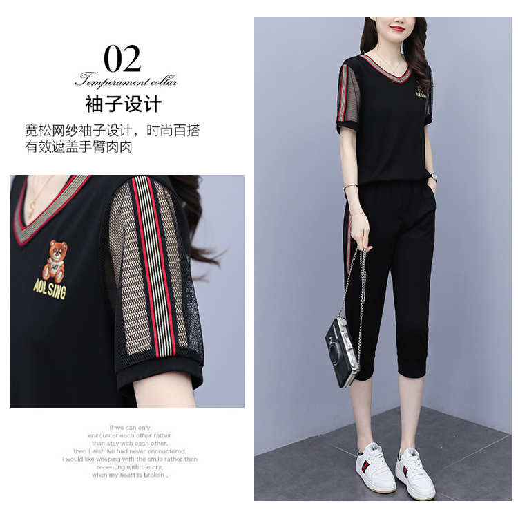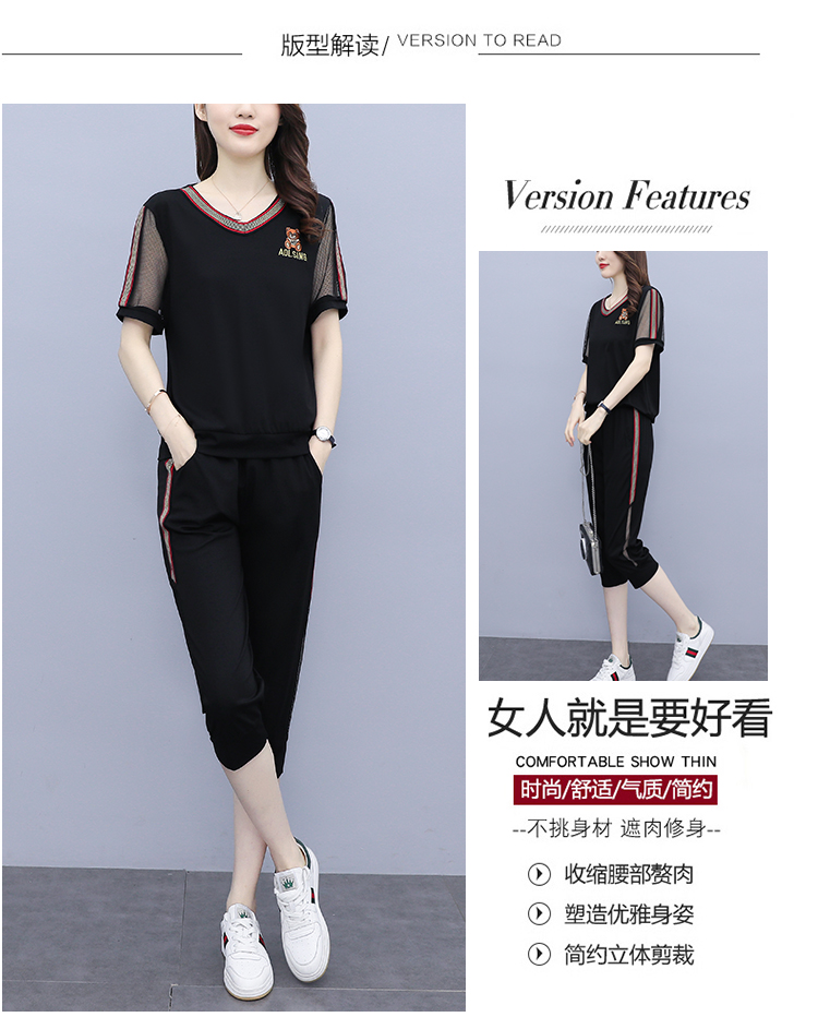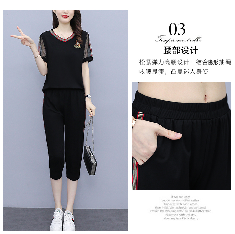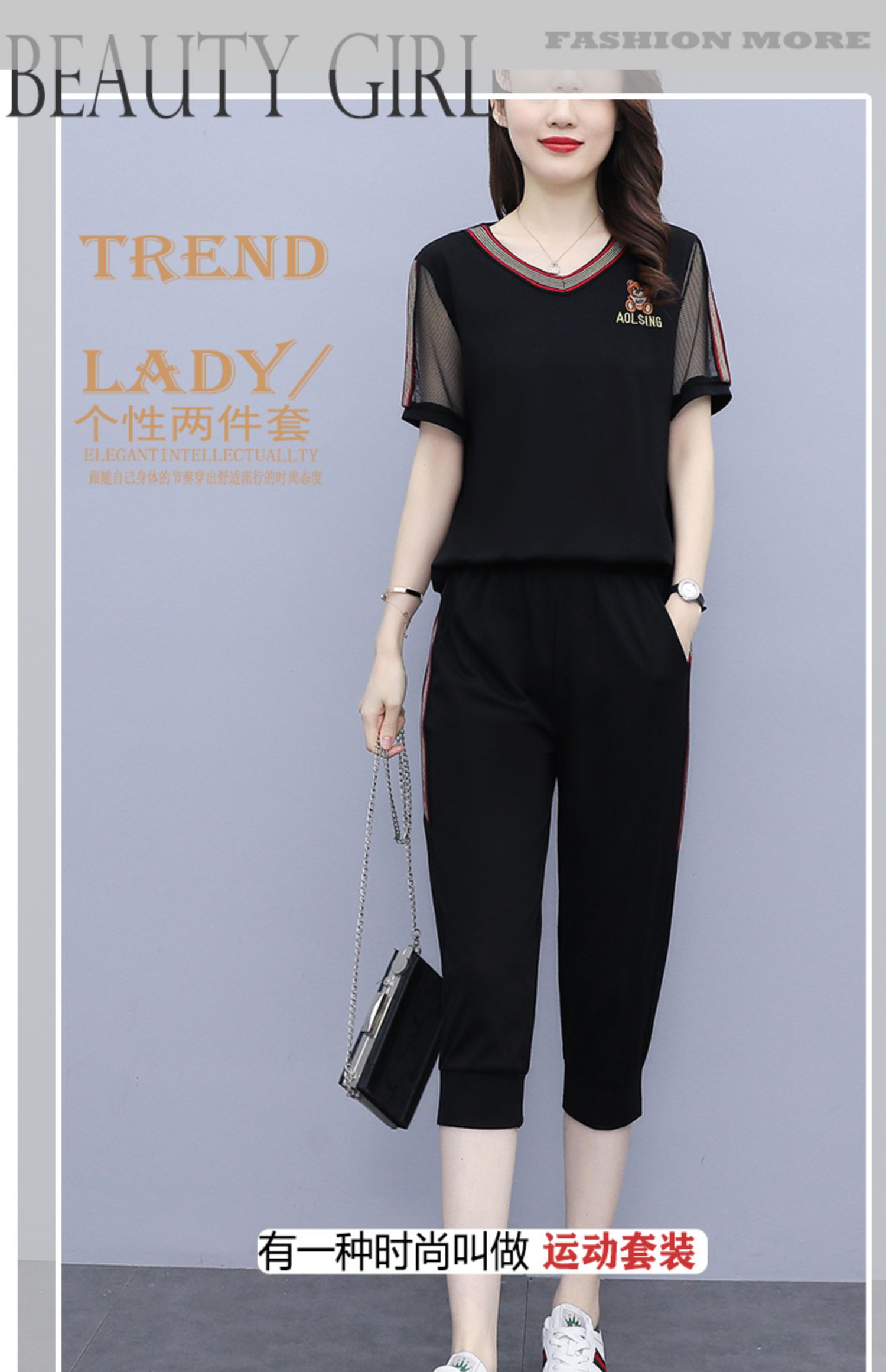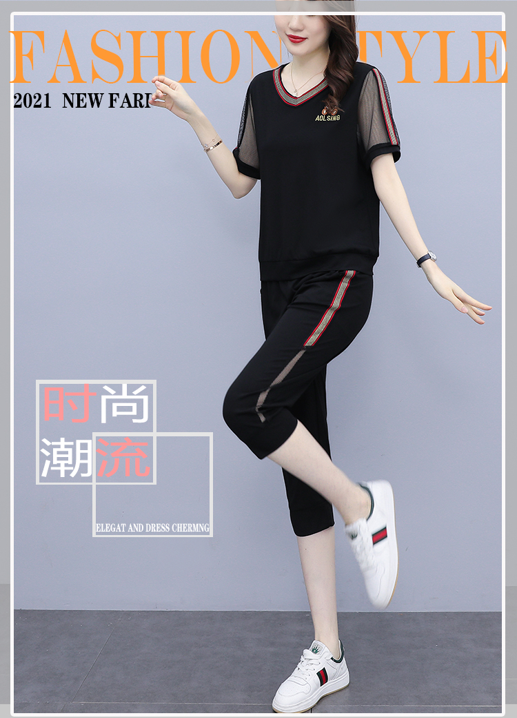 TR22741# 夏季新款大码女装休闲两件套装短袖七分裤时尚宽松套头圆领运动服 服装批发女装服饰货源