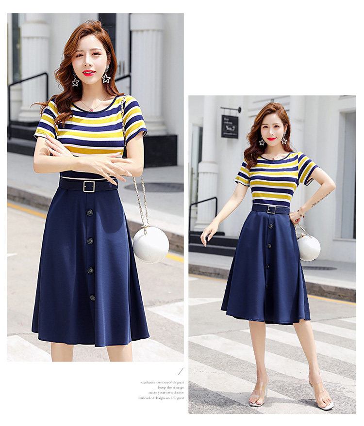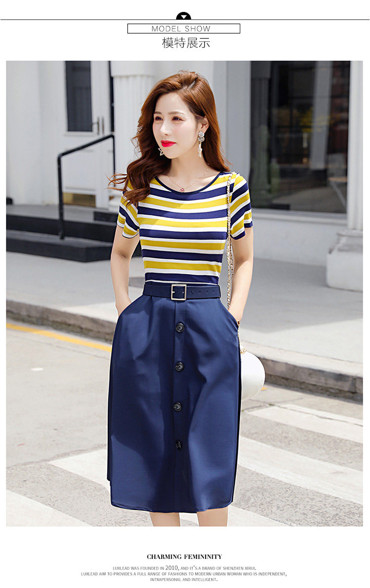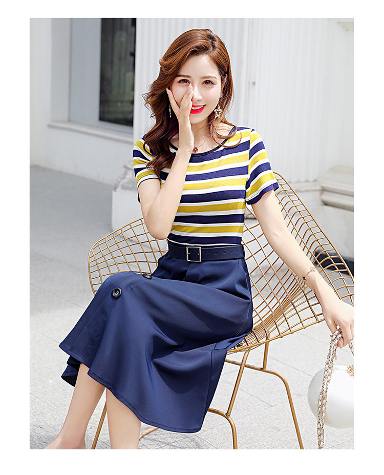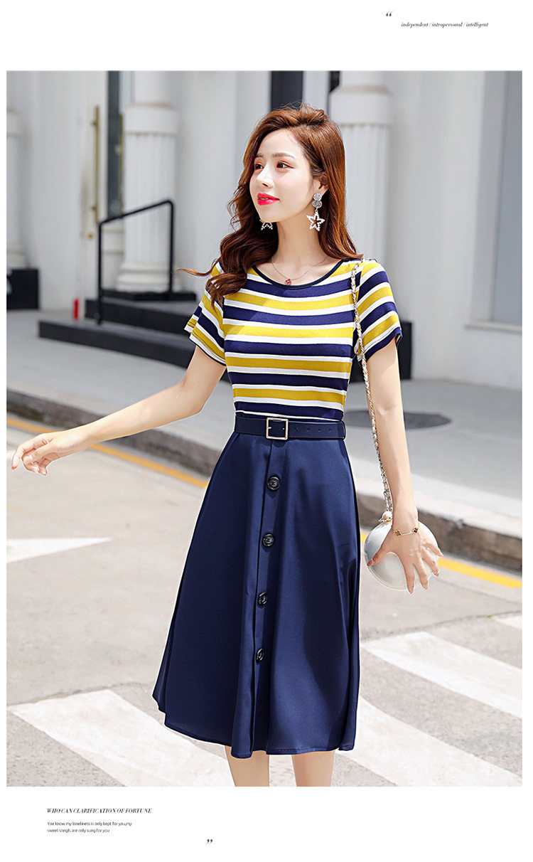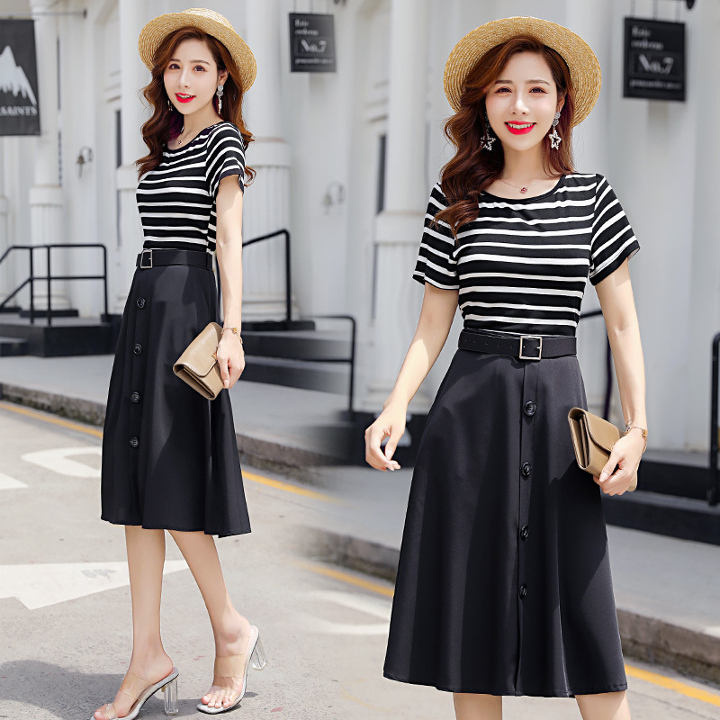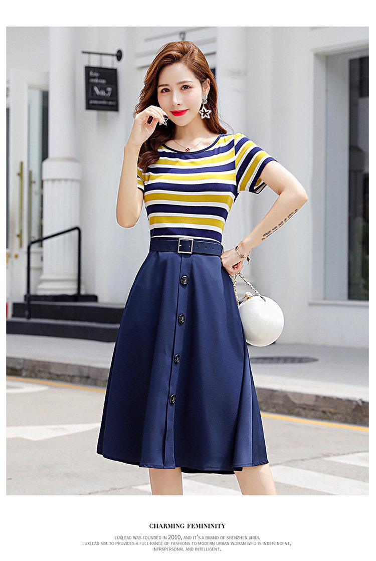 TR36332# 夏季圆领休闲A字裙通勤中长款连衣裙女装 服装批发女装批发服饰货源