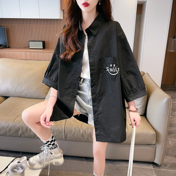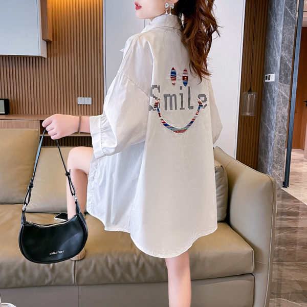 TR37407# 抖音质量涤棉防天丝中长款大码口袋刺绣印花短袖情侣衬衫 服装批发女装批发服饰货源