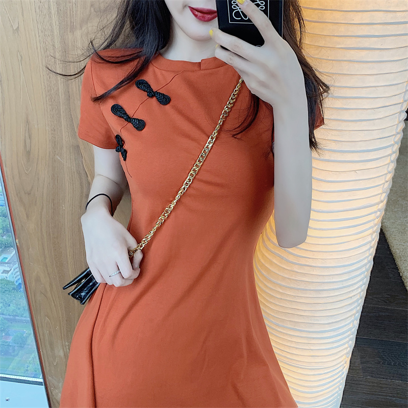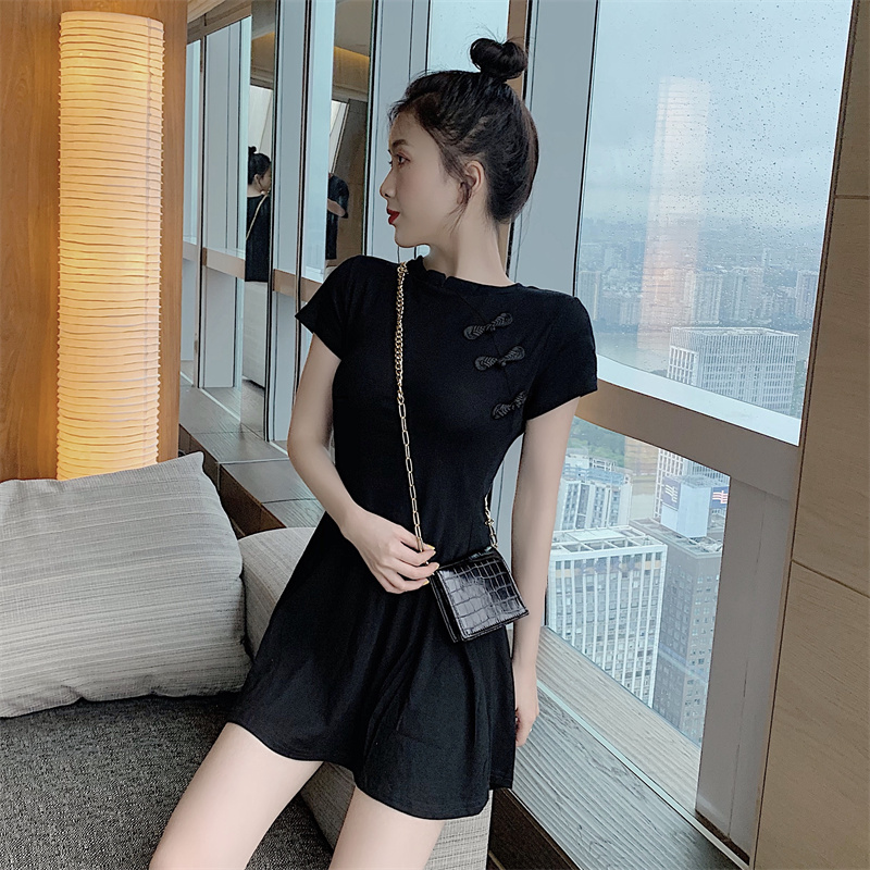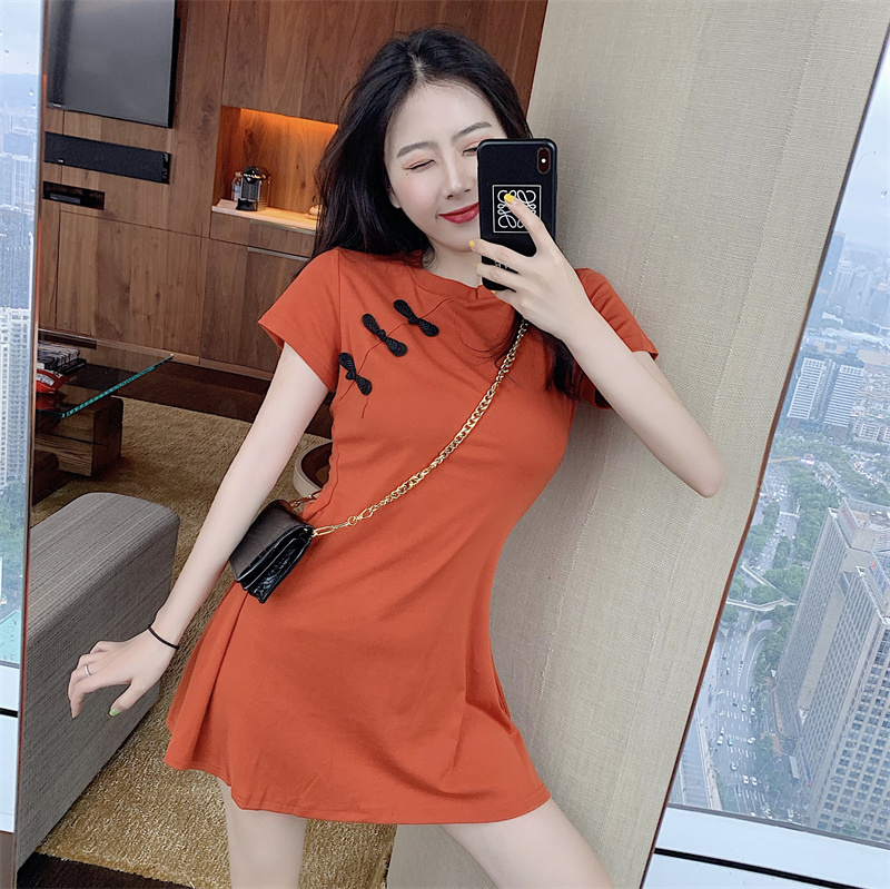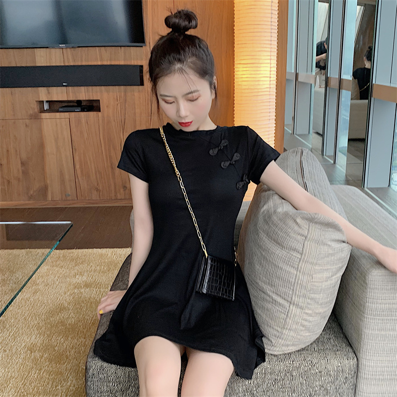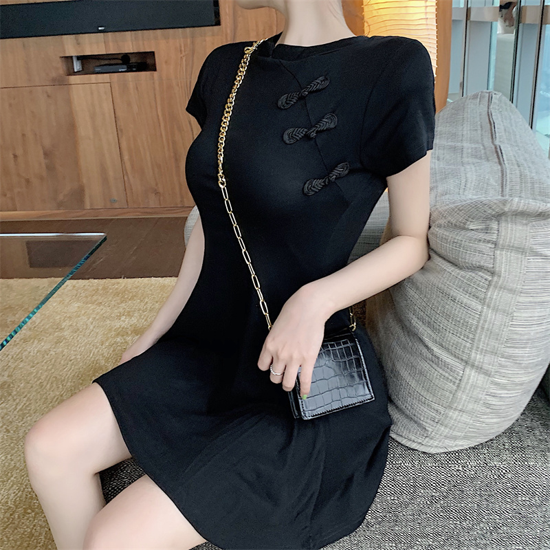 TR37426# ~港味Chic复古设计感收腰显瘦百搭盘扣旗袍裙子女 服装批发女装批发服饰货源