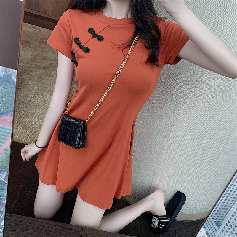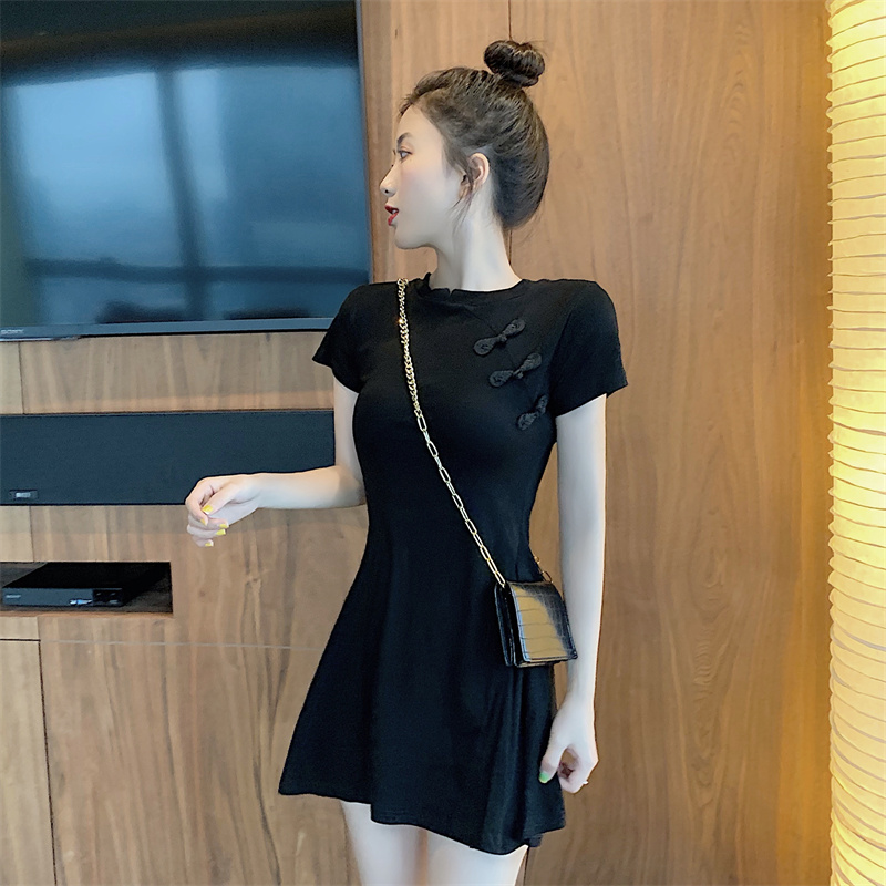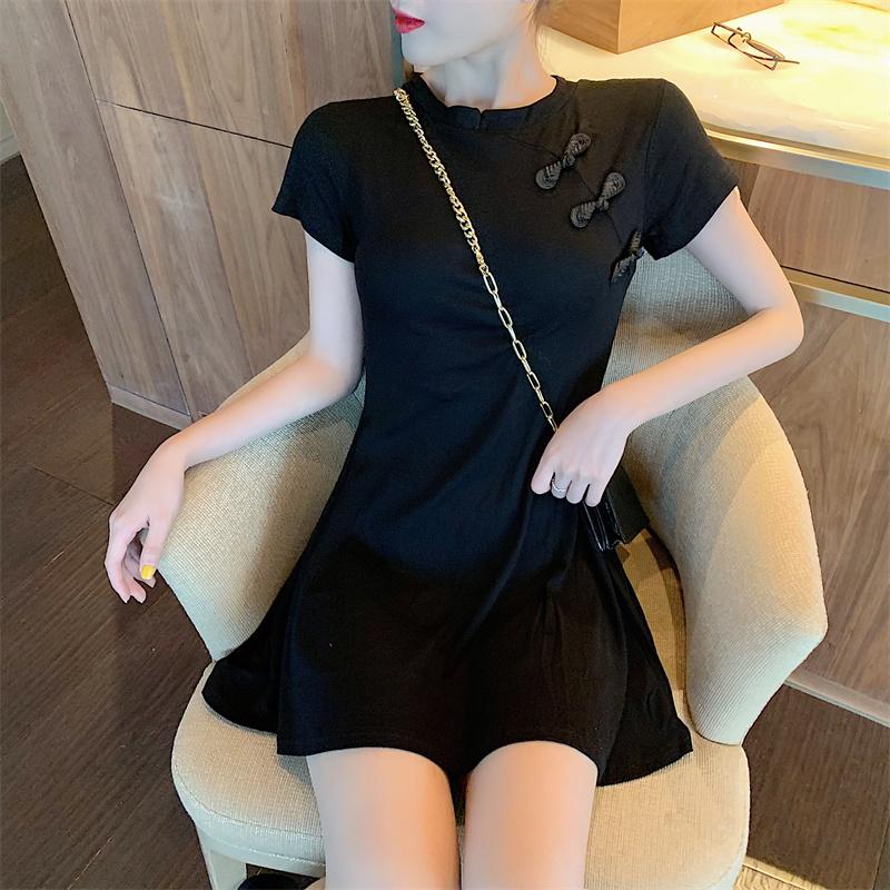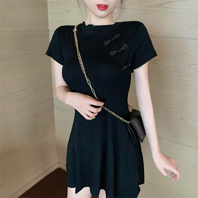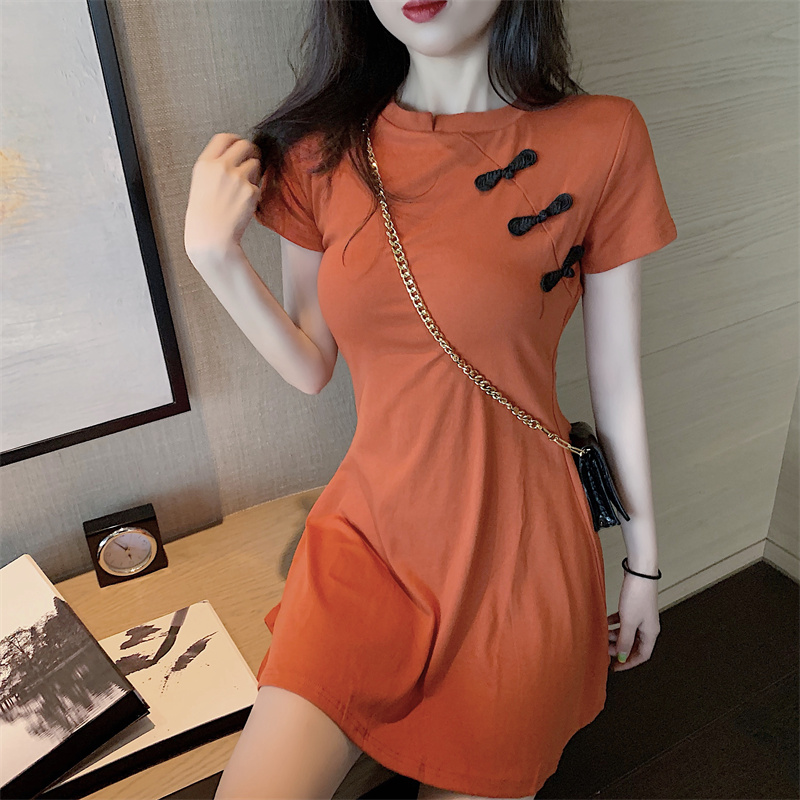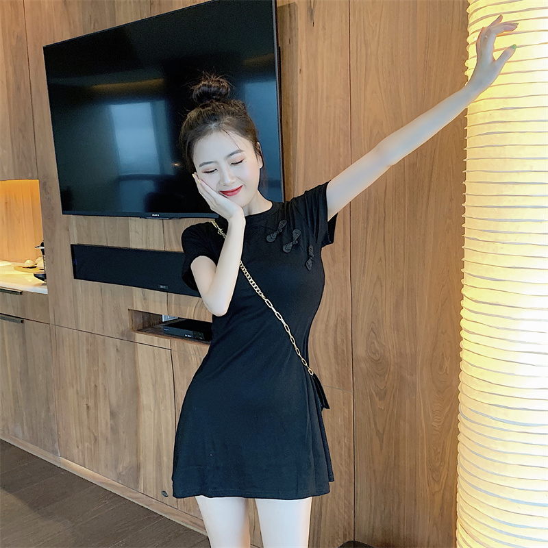 TR37426# ~港味Chic复古设计感收腰显瘦百搭盘扣旗袍裙子女 服装批发女装批发服饰货源