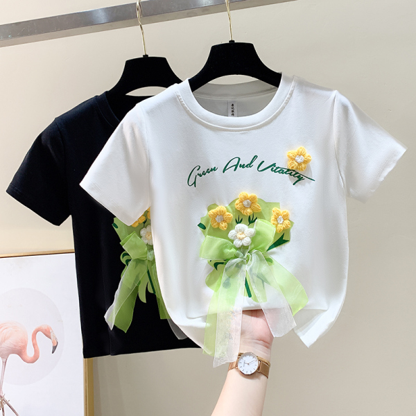 TR40869# 圆领印花短袖T恤女装夏季新款宽松显瘦泡泡袖上衣体恤衫 服装批发女装批发服饰货源