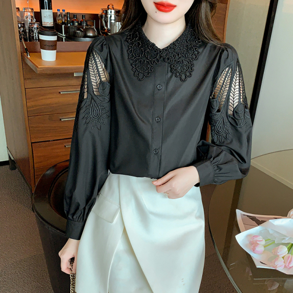 TR46301# 秋装新款小众设计刺绣镂空真丝棉衬衫宽松显瘦长袖衬衣小衫女 服装批发女装批发服饰货源