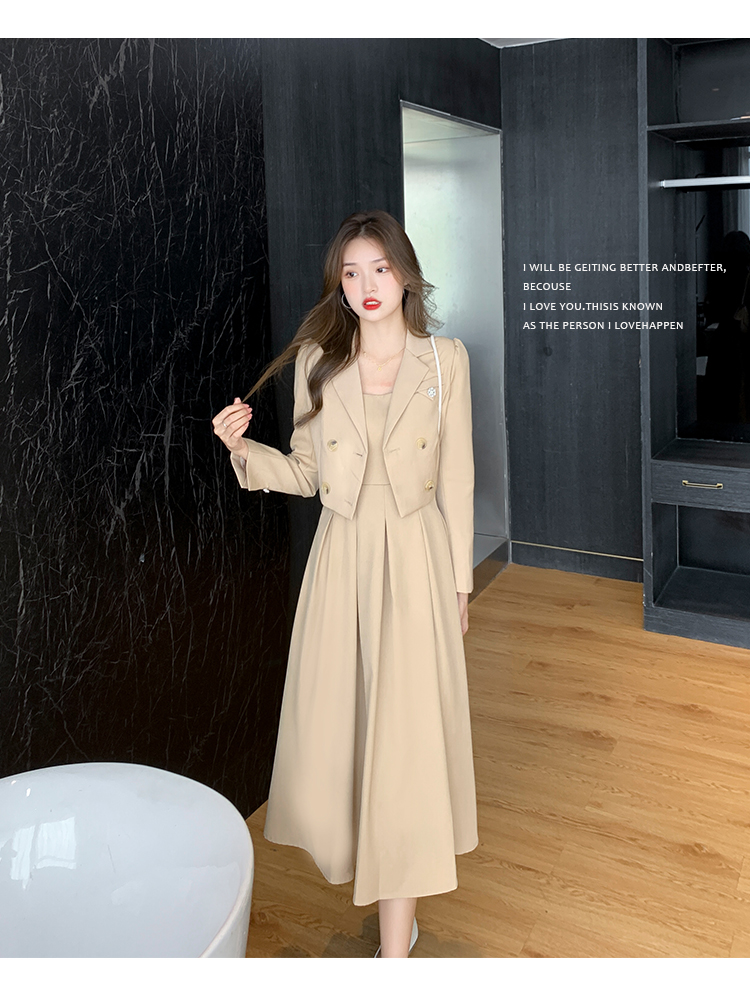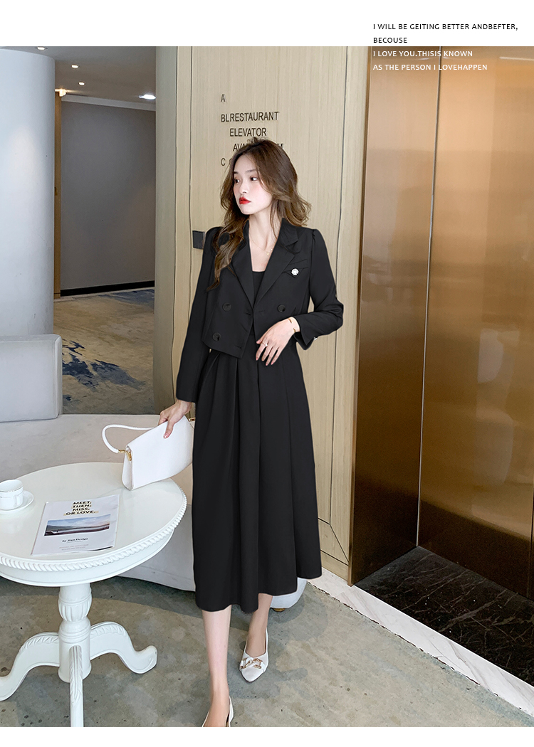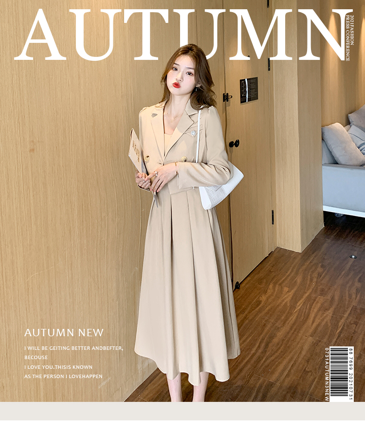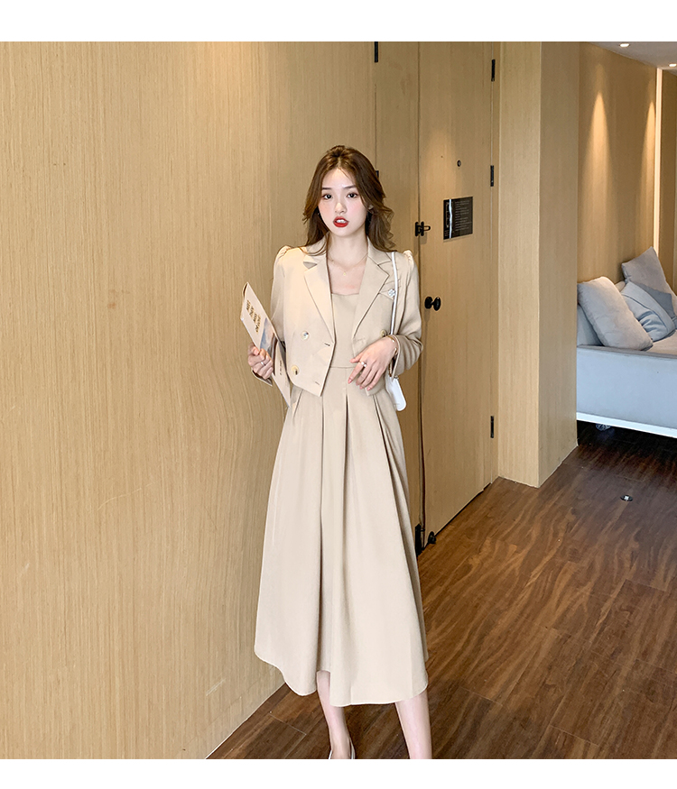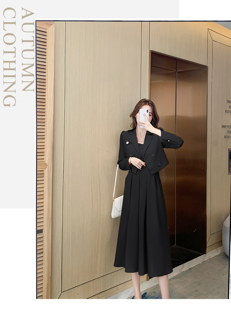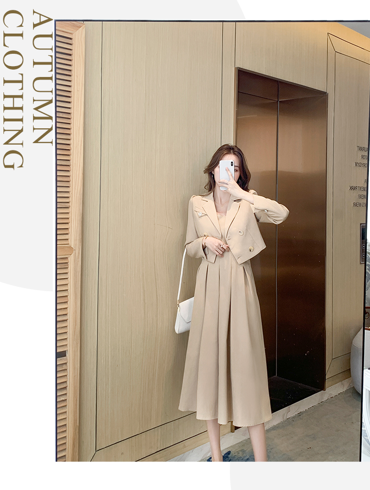 TR48262# 秋季新款设计感吊带连衣裙套装女百搭小西服两件套 服装批发女装批发服饰货源