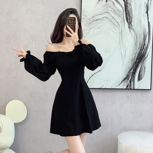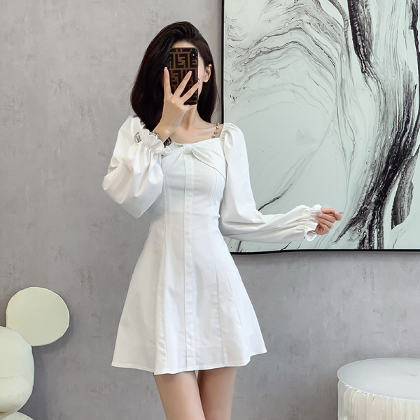 TR48381# 秋季新款性感一字肩短袖吊带连衣裙女高腰显瘦蝴蝶结裙 服装批发女装批发服饰货源