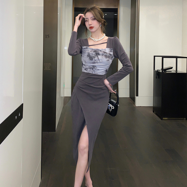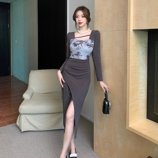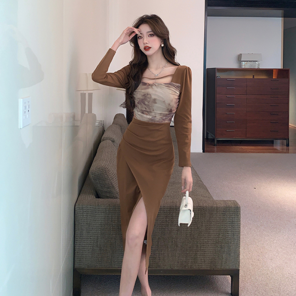 TR48853# 网纱拼接新款洋气高级感新中式印花抹胸连衣裙 服装批发女装批发服饰货源