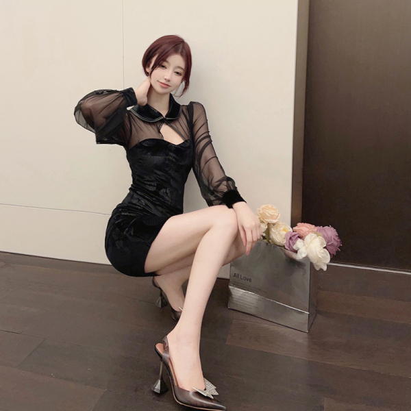面料:优质弹力压花丝绒+优质弹力网纱(厚度中等,亲肤舒适,弹力佳)