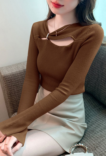TR54368# 欧货秋装新款打底衫女针织衫设计感小众ins弹力镂空修身T桖 服装批发女装批发服饰货源