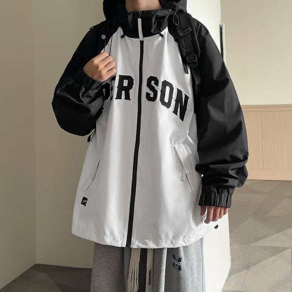 TR55527# 美式字母风衣外套男春秋季宽松连帽夹克青少年棒球服情侣上衣 服装批发男装批发男装货源