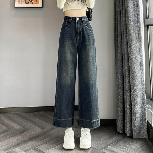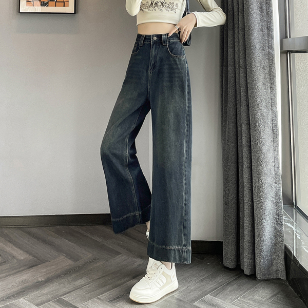 TR56353# 深蓝色复古牛仔裤女夏天新款小个子裤子薄款宽松显瘦直筒裤 服装批发女装批发服饰货源