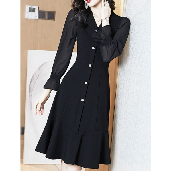 TR56706# 法式复古连衣裙黑色赫本风气质高级感小黑裙春秋季新款女长袖 服装批发女装批发服饰货源