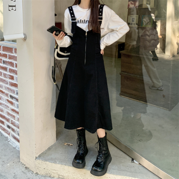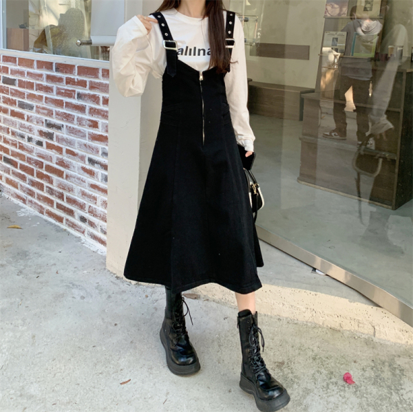 TR56740# 胖mm大码美式复古牛仔背带裙女春秋季韩版宽松百搭显瘦收腰连衣裙 服装批发女装批发服饰货源