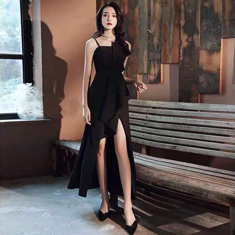 TR57689# 吊带抹胸开叉小礼服女年会气质结婚敬酒服不规则下摆连衣裙 宴会礼服批发晚礼服货源