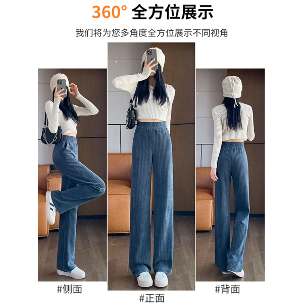 TR57966# 针织阔腿裤女春秋新款运动裤高腰垂感雪尼尔拖地窄版休闲直筒裤子 服装批发女装批发服饰货源