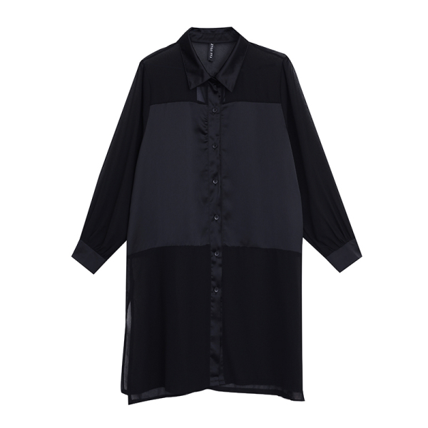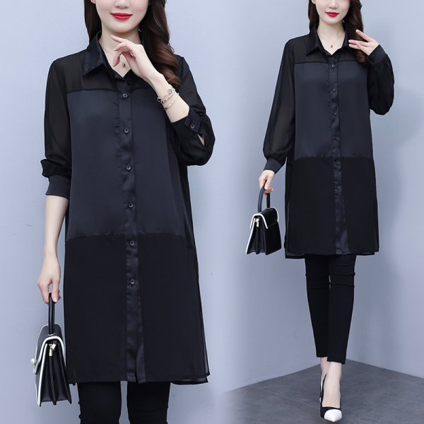 TR59337# 大码女装上衣春夏季新款高端韩版拼接网纱气质中长款衬衣 服装批发女装批发服饰货源