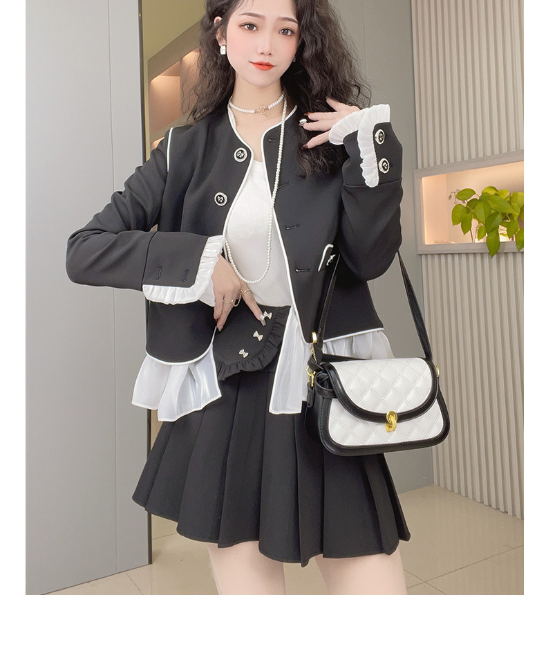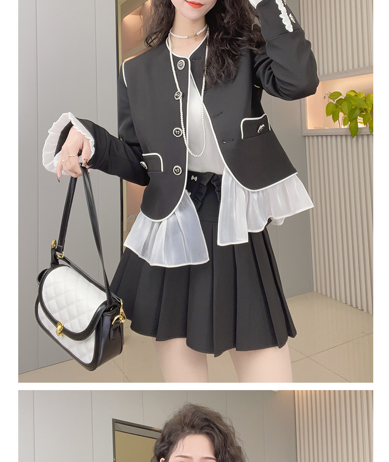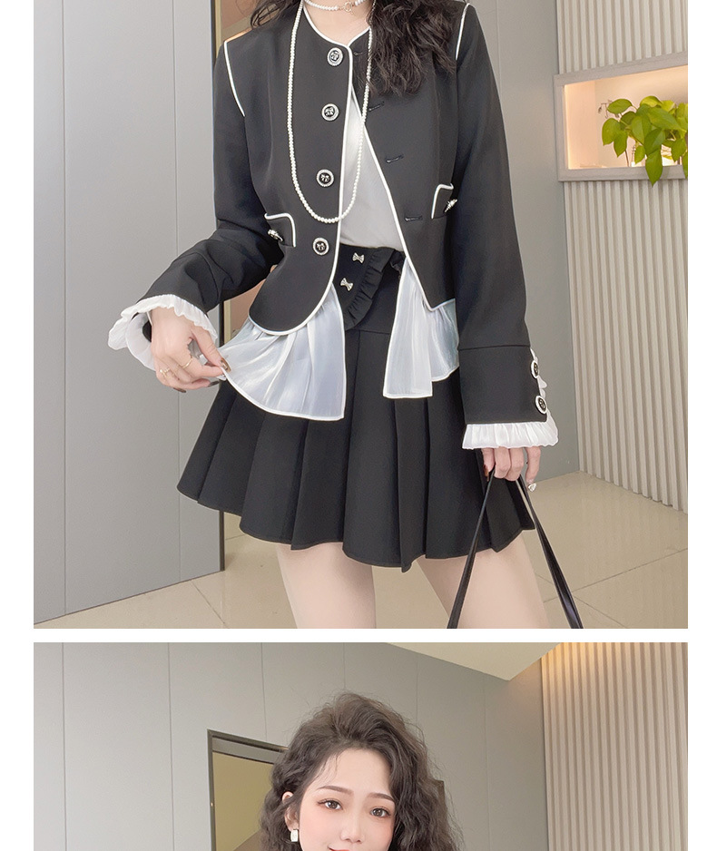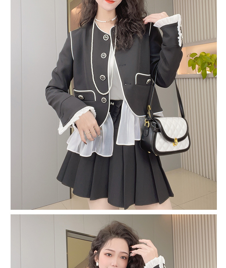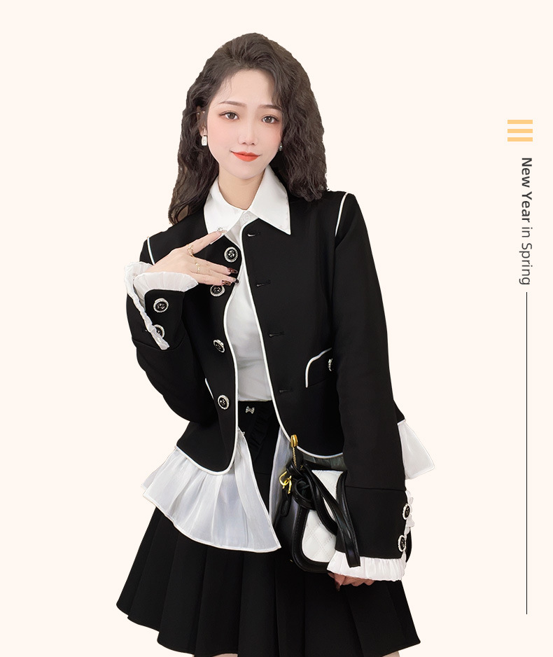 TR60024# 高级感小个子穿搭别致短外套气质黑色拼套春装新款女 服装批发女装批发服饰货源