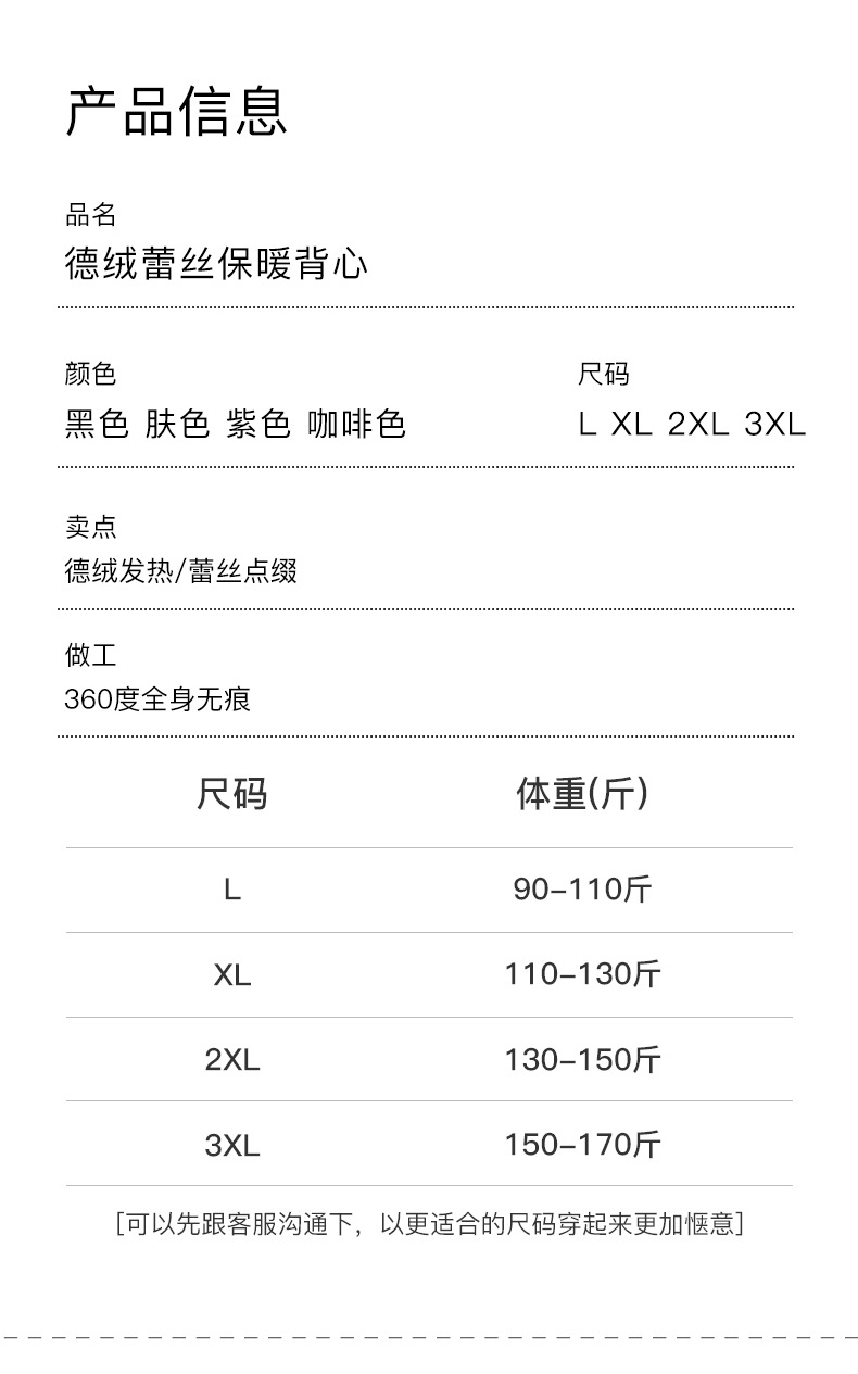 - 尺码:L【建议90-110斤】,XL【建议110-130斤】,XXL【建议130-150斤】,XXXL【建议150-170斤】