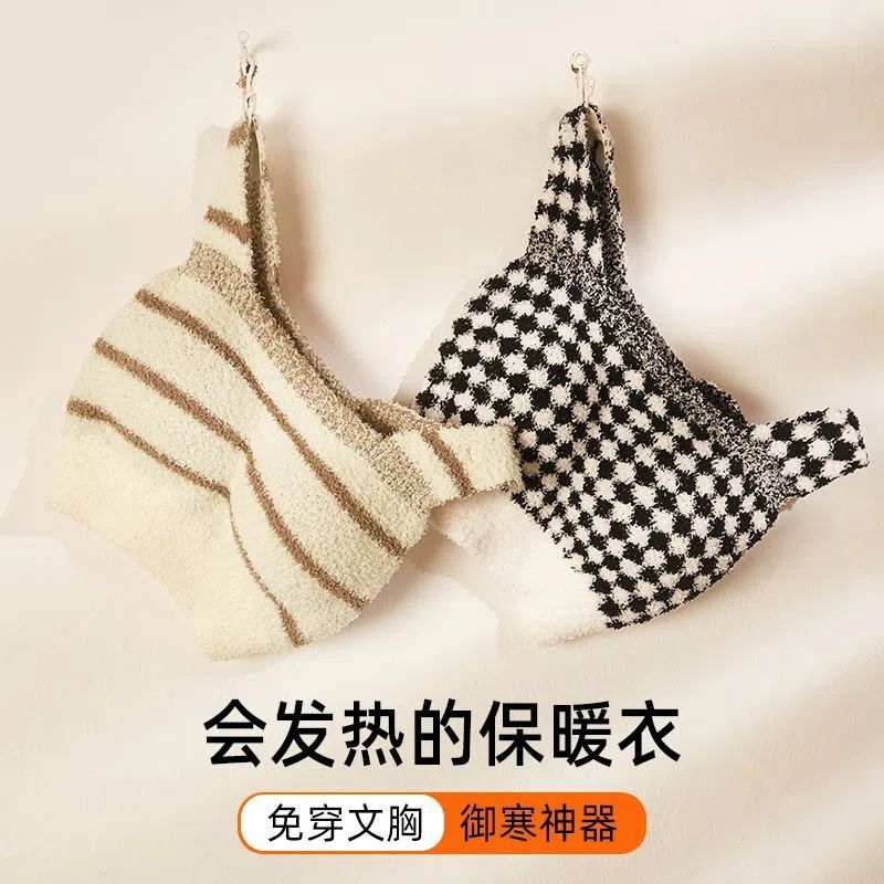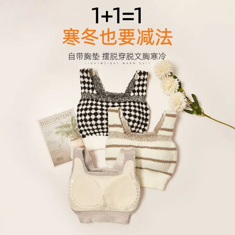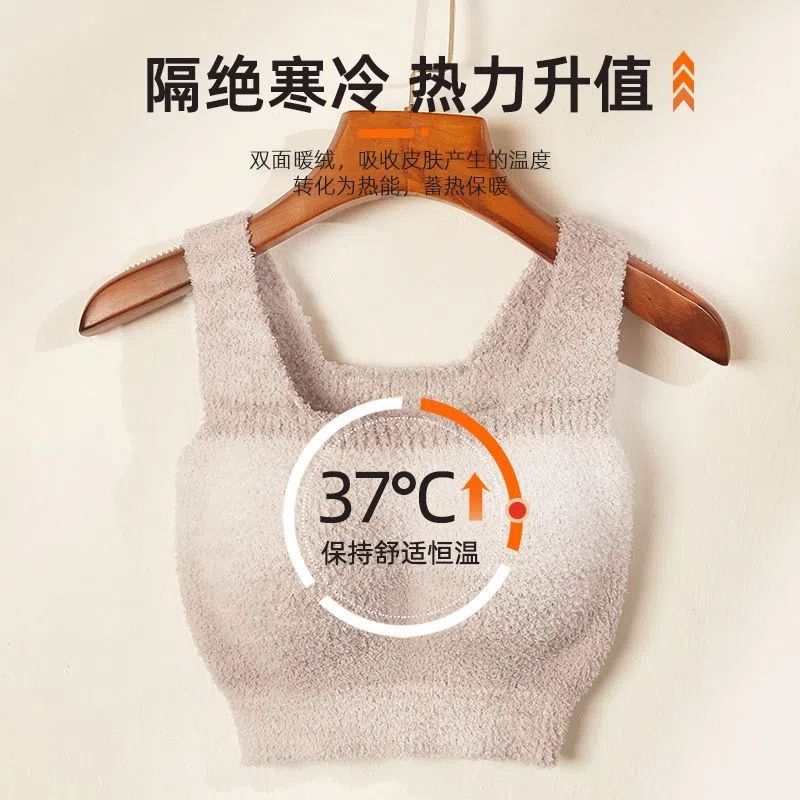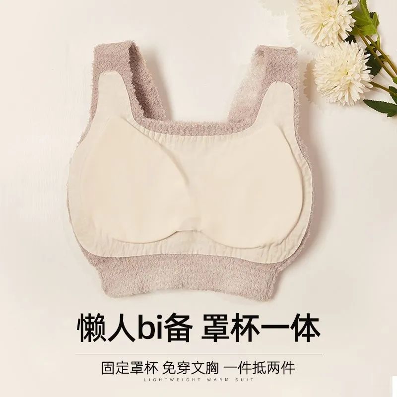 TR60056# 秋冬新款羊羔绒短款保暖背心女带胸垫兔穿文胸美背舒适保暖内衣女 服装批发女装批发服饰货源