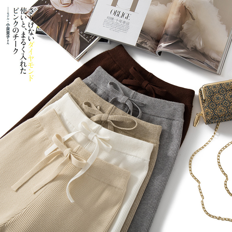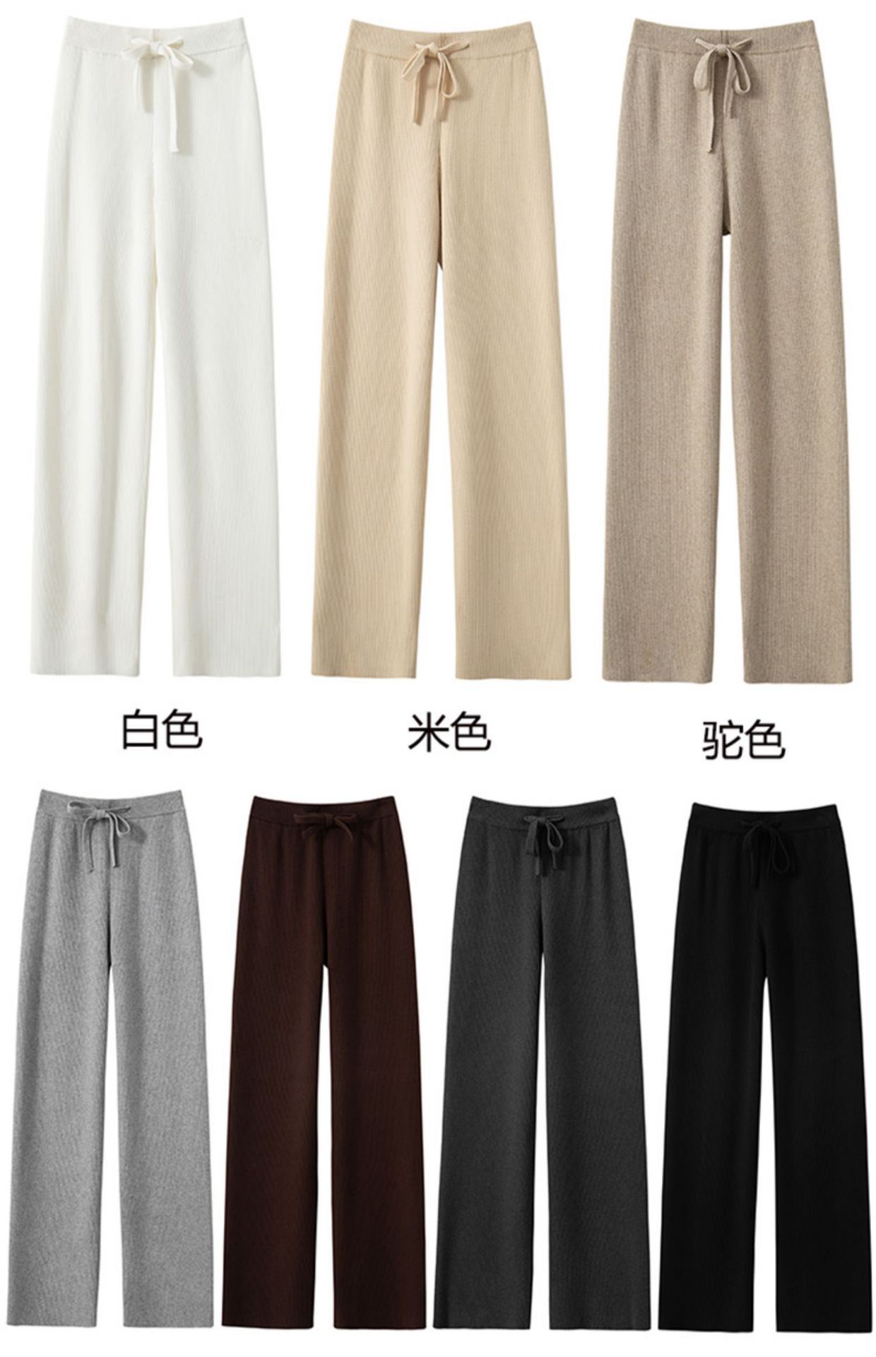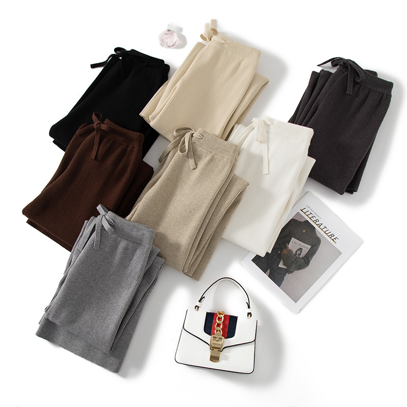 TR60142# 针织女裤高腰弹力垂感百搭秋冬打底拖地裤阔腿裤显瘦直筒裤女 服装批发女装批发服饰货源