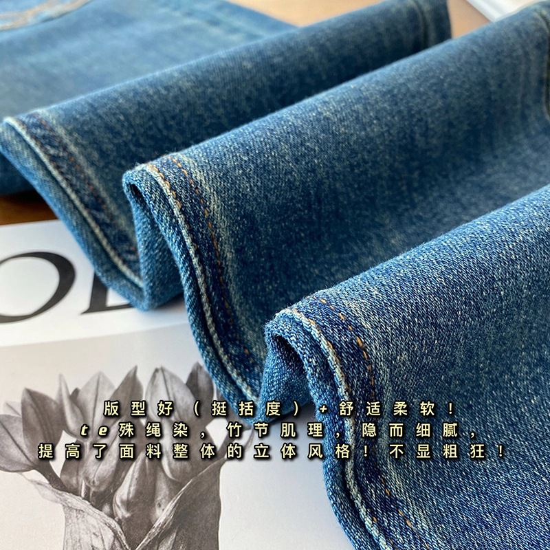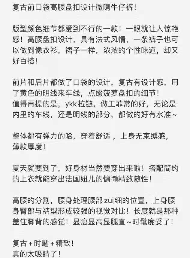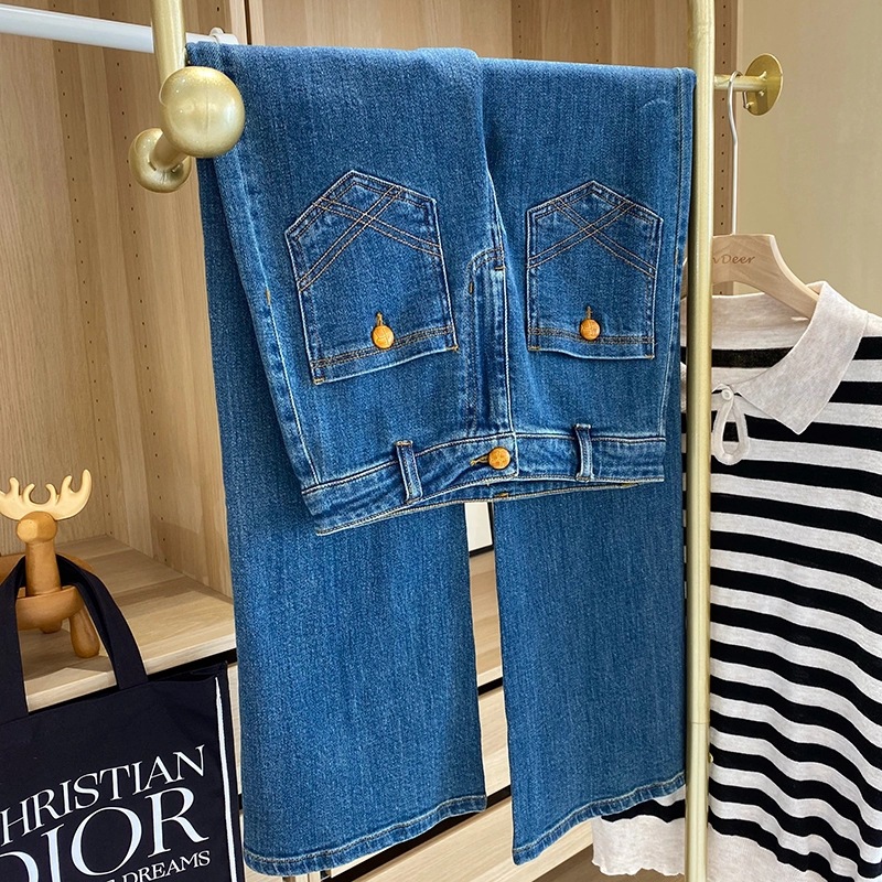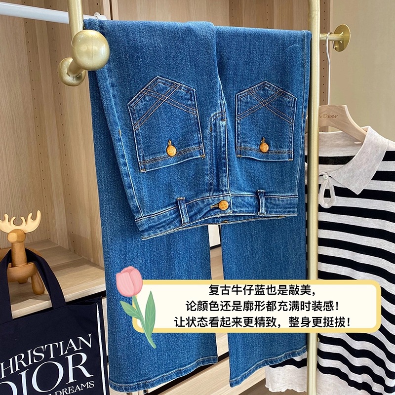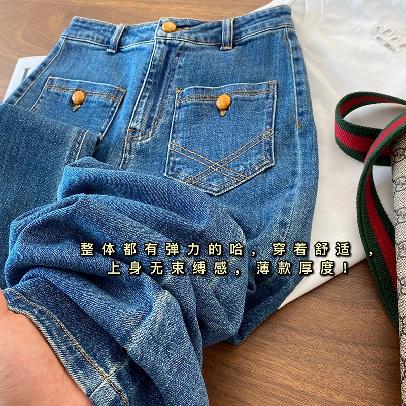 TR60561# 春秋法式复古高腰前口袋微喇牛仔裤女高腰chic直筒宽松阔腿拖地裤