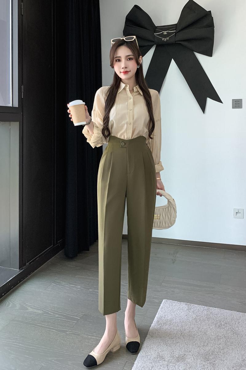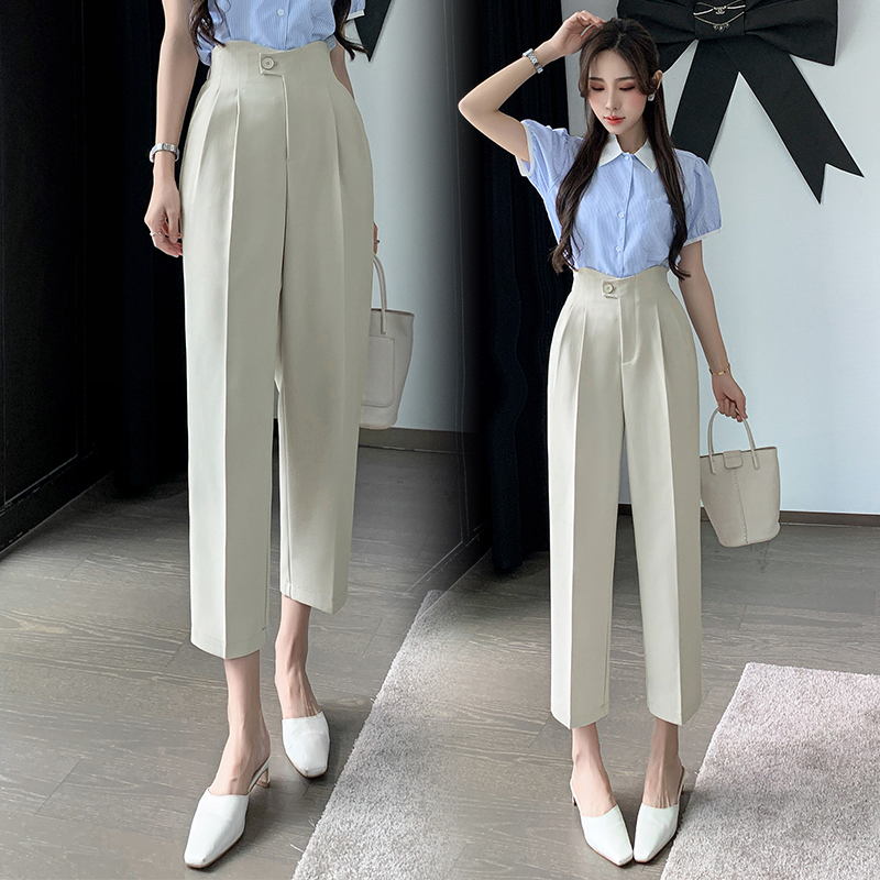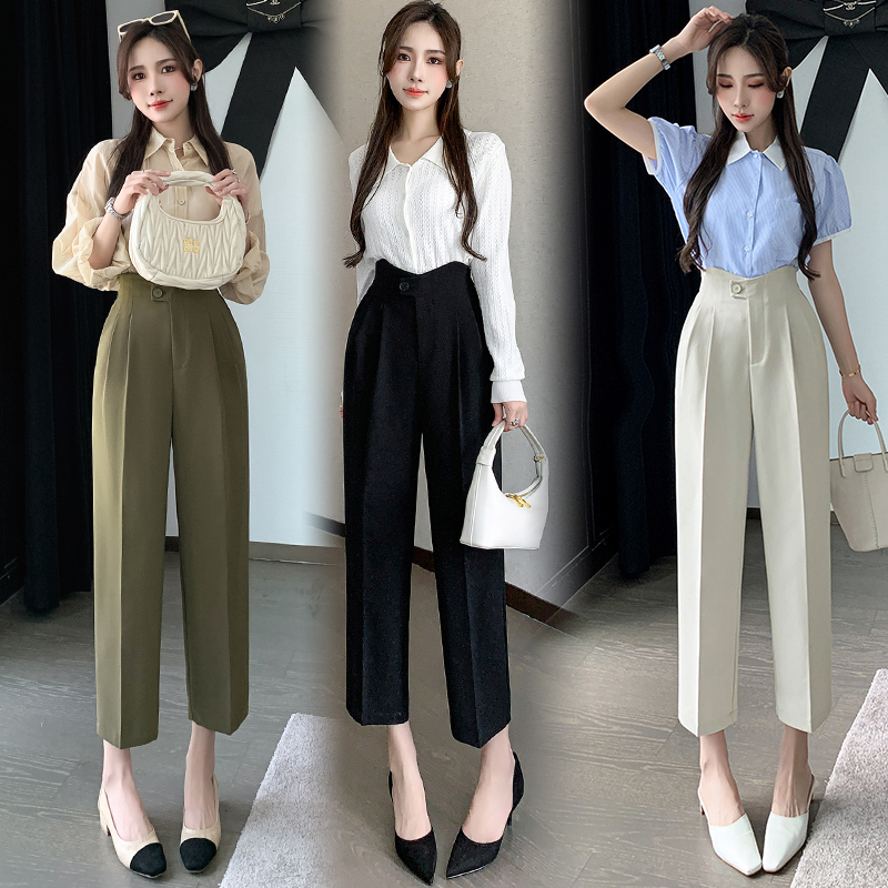 TR61126# 秋装新哈伦9分裤高腰黑色通勤直筒休闲烟管长裤小脚萝卜裤女 服装批发女装批发服饰货源