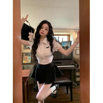 TR61632# 学院风jk套装泡泡袖衬衫+辣妹高腰显瘦a字短裙裤女