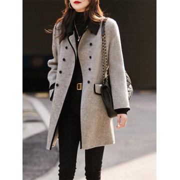 TR63866# 轻奢优雅气质感撞色翻领双排扣中长款毛呢大衣外套女秋冬 服装批发女装批发服饰货源
