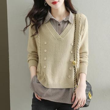 TR64398# 假两件衬衫女秋冬新款设计感小众洋气宽松内搭上衣娃娃领衬衣 服装批发女装批发服饰货源