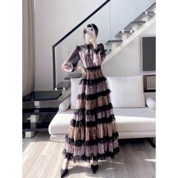 TR64971# 轻奢拼接重工仿真丝定位油画印花收腰气质蛋糕裙 服装批发女装批发服饰货源