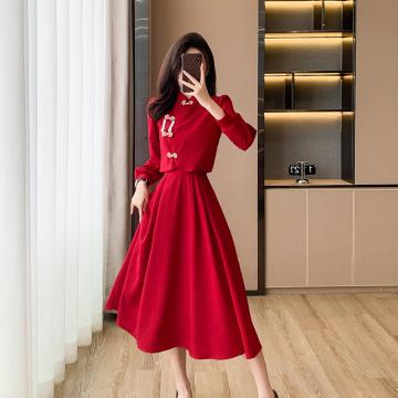 TR65461# 旗袍敬酒服新娘新款两件套新中式订婚礼服长袖回门秋冬 服装批发女装批发服饰货源