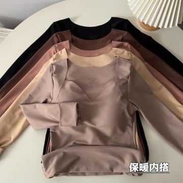 TR65484# 秋冬保暖无痕肌肤衣保暖内衣带胸垫秋衣长袖低领打底衫 服装批发女装批发服饰货源