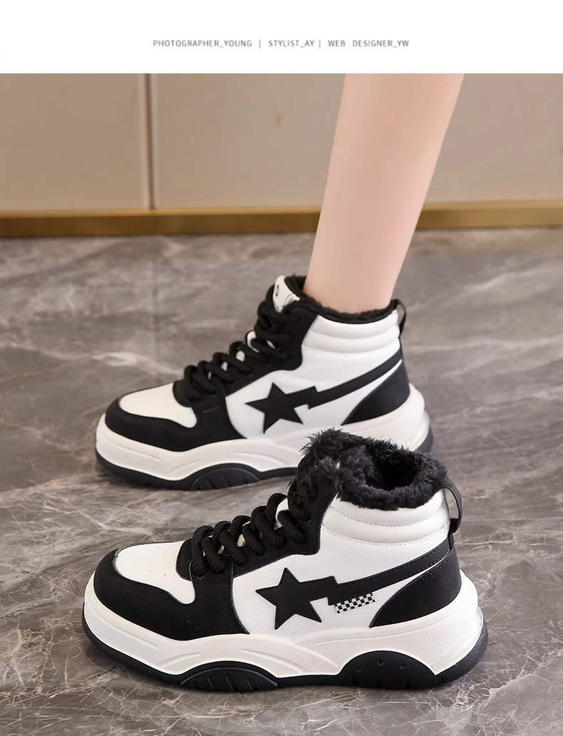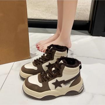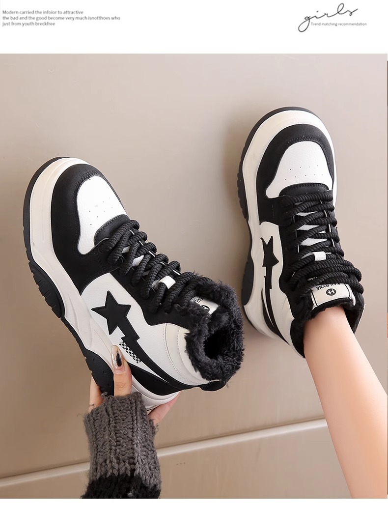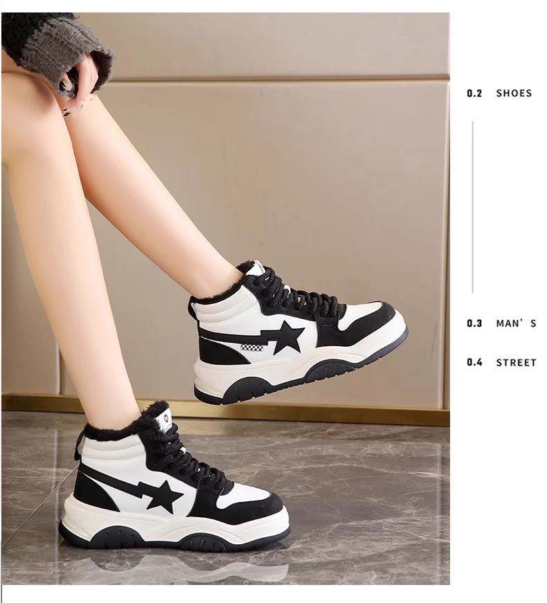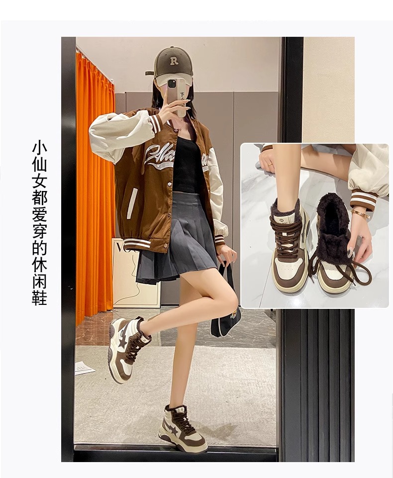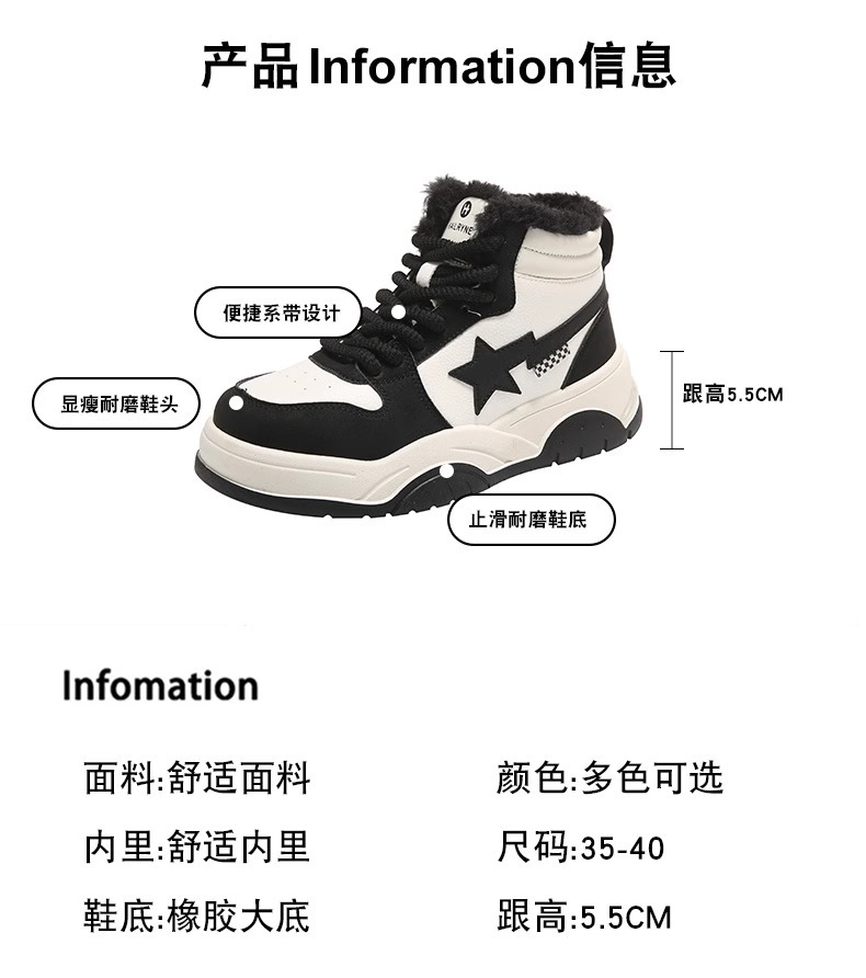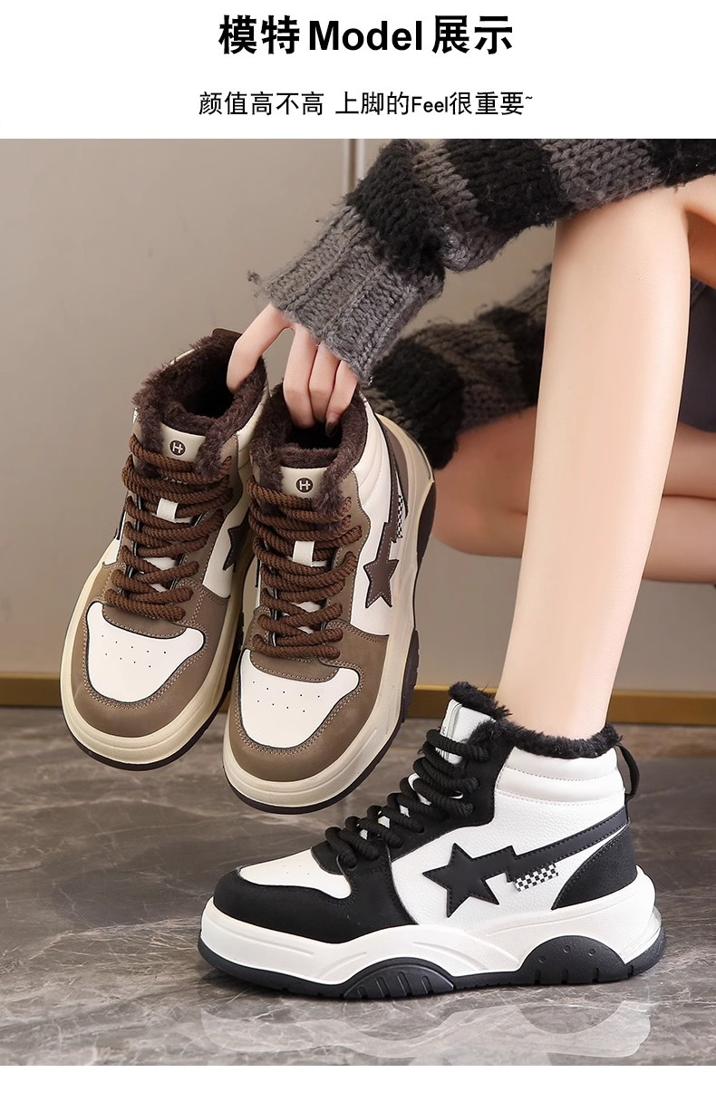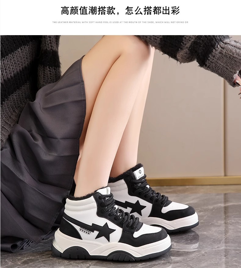 X-30849# 冬季高帮鞋女新款厚底运动百搭小白鞋加绒休闲女板鞋保暖棉鞋 鞋子批发女鞋货源