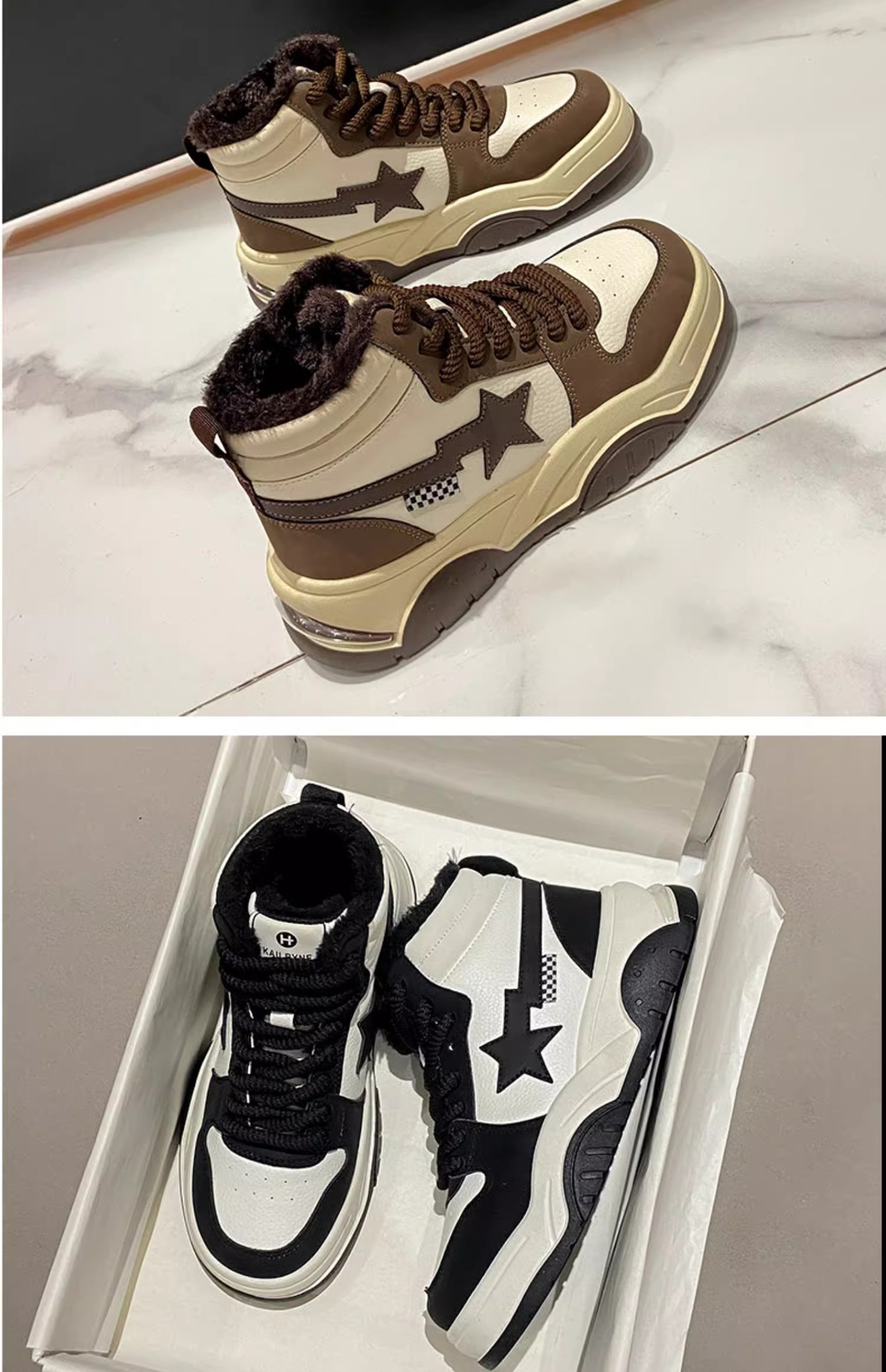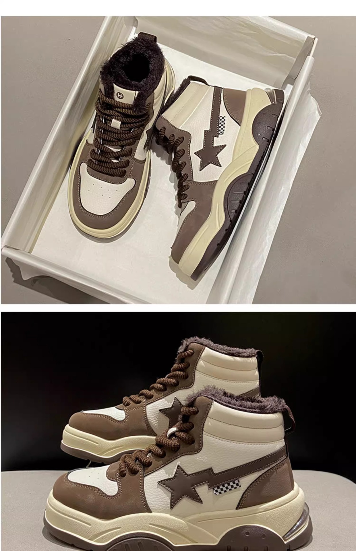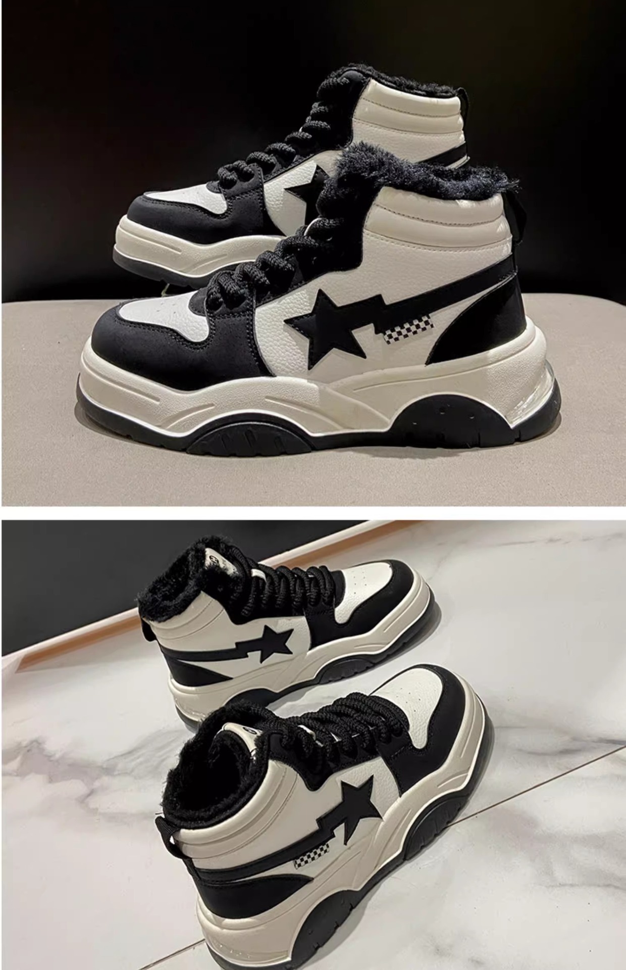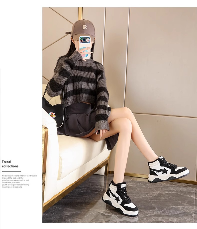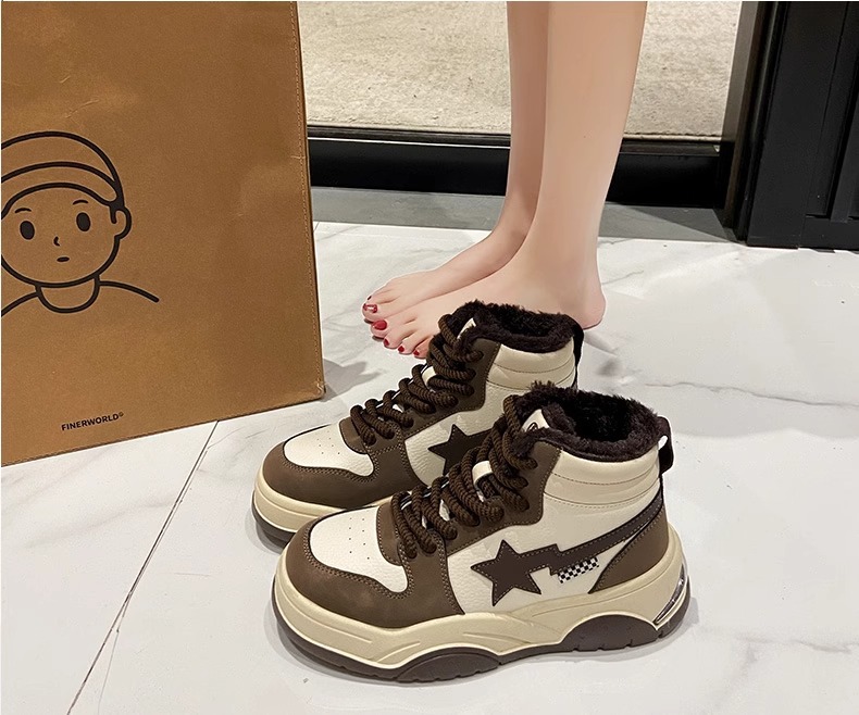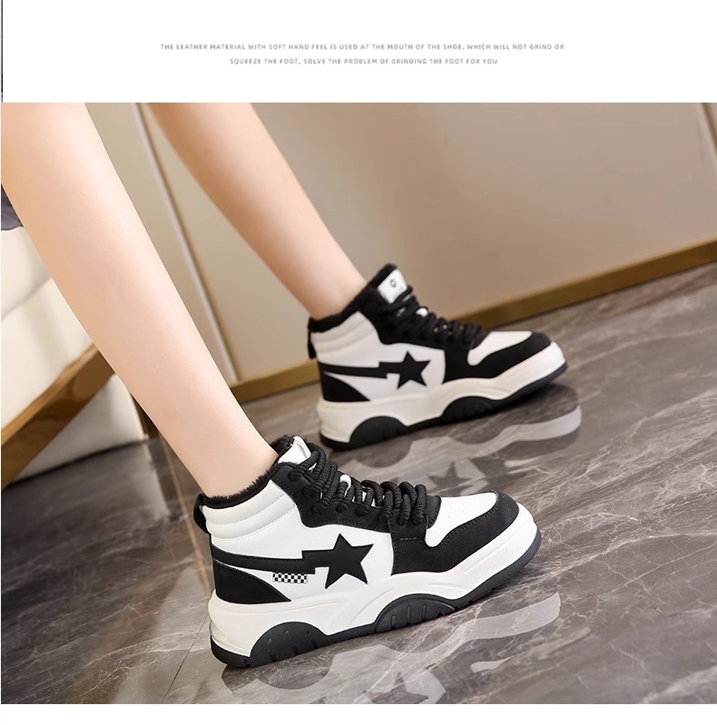 X-30849# 冬季高帮鞋女新款厚底运动百搭小白鞋加绒休闲女板鞋保暖棉鞋 鞋子批发女鞋货源