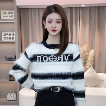 TR67112# 秋季新款韩版宝藏晕染毛衣时尚条纹撞色拼色毛衣 服装批发女装批发服饰货源