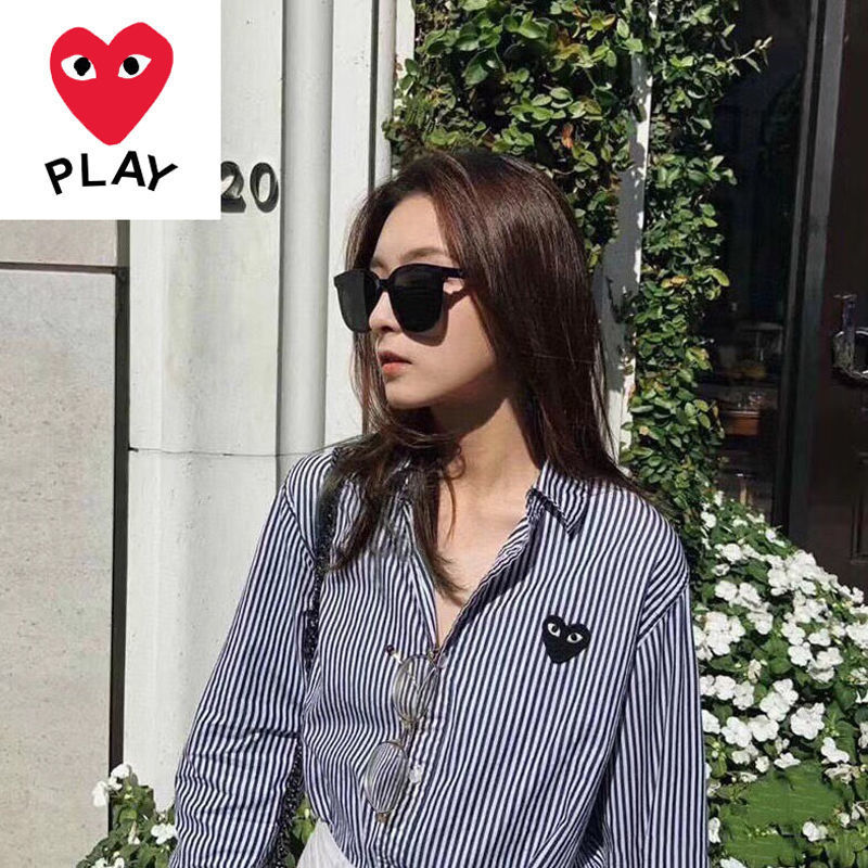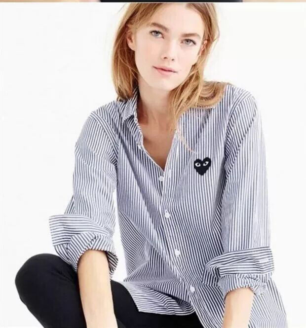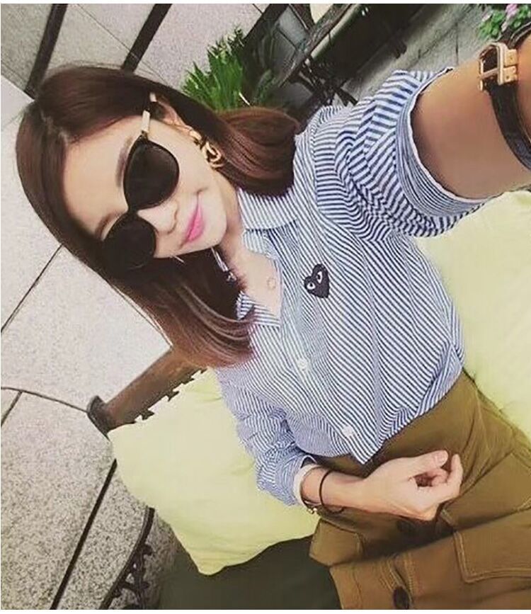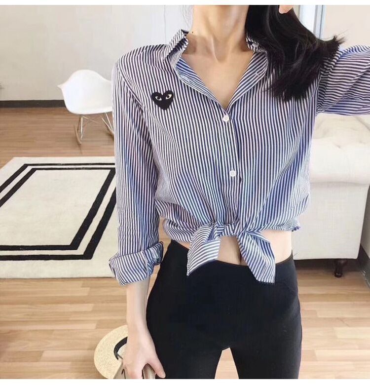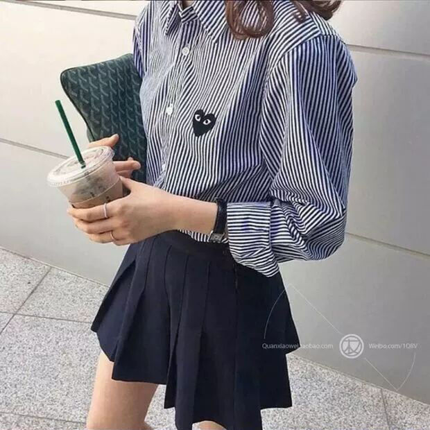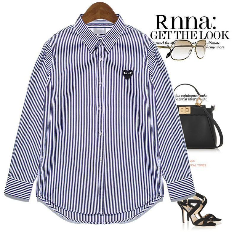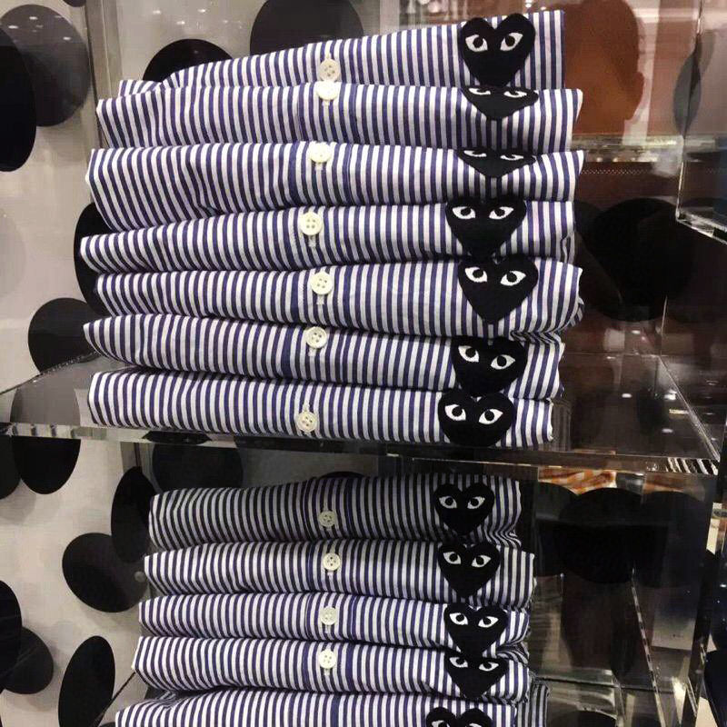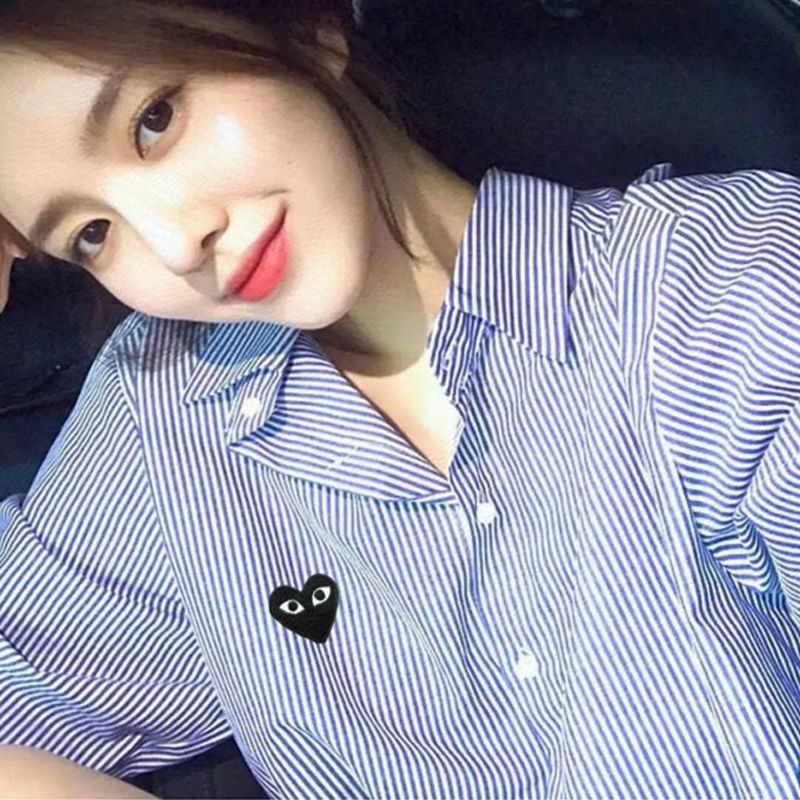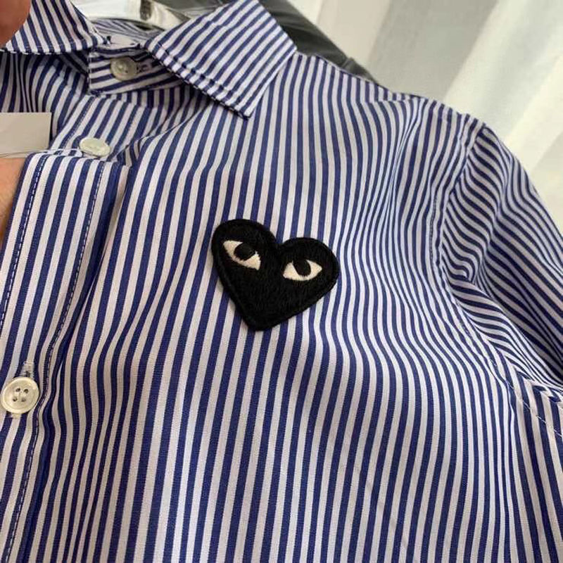 TR67343# 春秋上衣衬衣刺绣男潮条纹日系休闲复古爱心长袖衬衫宽松薄款 男装批发