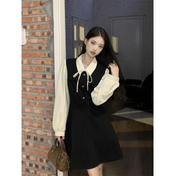 假两件拼色大摆连衣裙,面料手感很顺滑