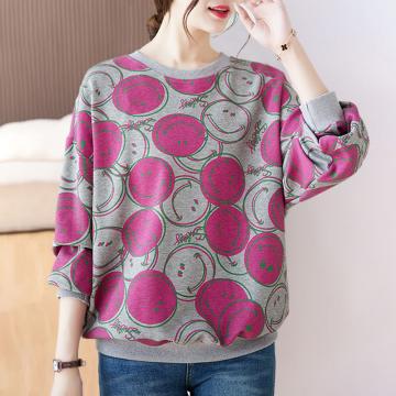TR68214# 大码女装时尚笑脸印花圆领卫衣女设计感长袖打底衫慵懒风宽松上衣 服装批发女装批发服饰货源