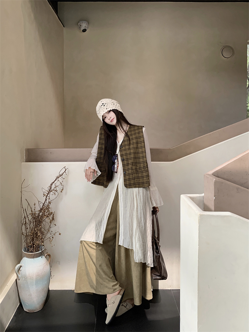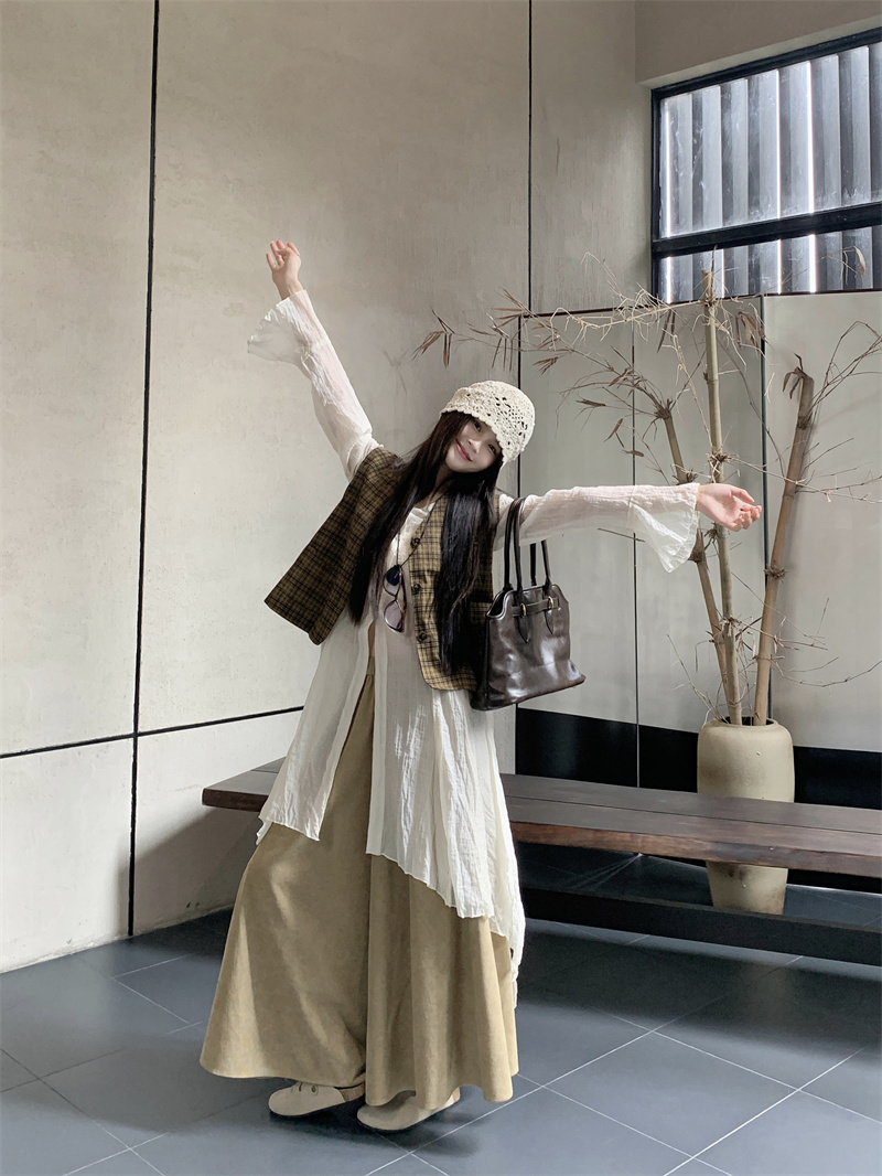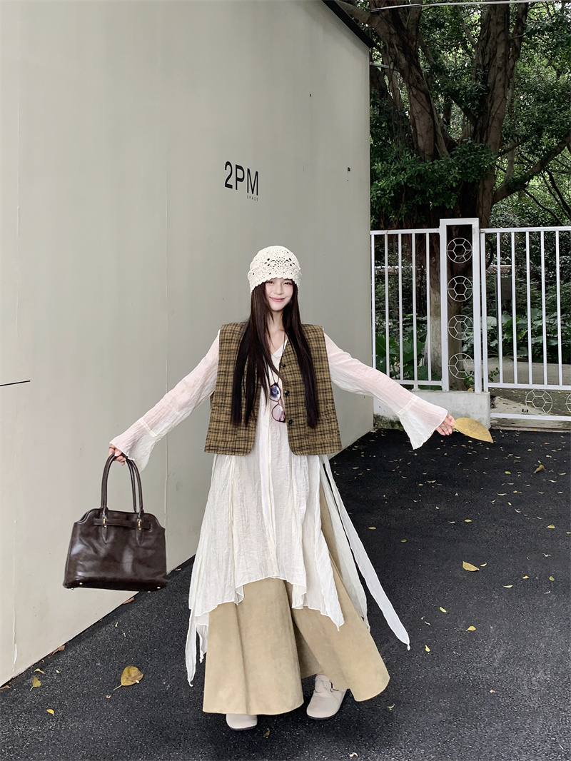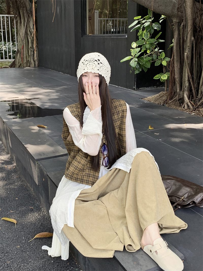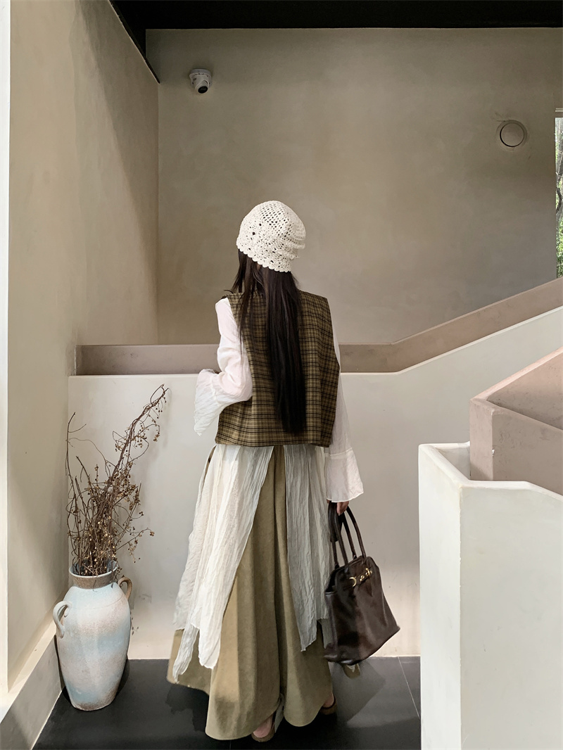 马甲 S肩宽:38cm 胸围:100cm 衣长:48cm M肩宽:39cm 胸围:104cm 衣长:49cm L肩宽:40cm 胸围:108cm 衣长:50cm 衬衣 S肩宽:38cm 胸围:90cm 袖长:64cm M肩宽:39cm 胸围:94cm 袖长:65cm L肩宽:40cm 胸围:98cm 袖长:66cm 裤子 S 腰围:66cm—70cm(松紧腰) 裤长:90cm M腰围:68cm—74cm(松紧腰) 裤长:91cm L腰围:70cm—78cm(松紧腰) 裤长:92cm