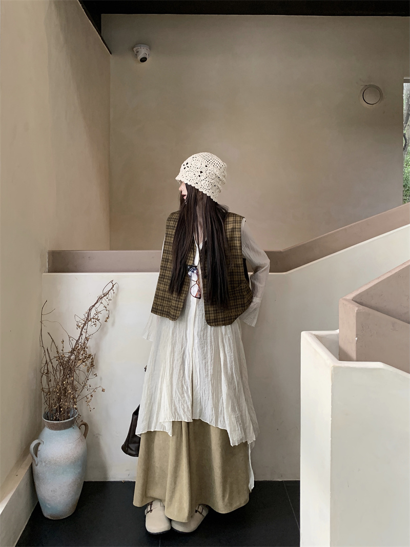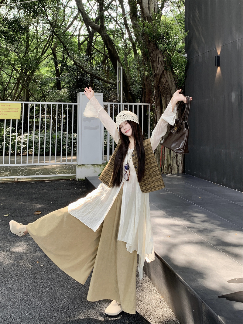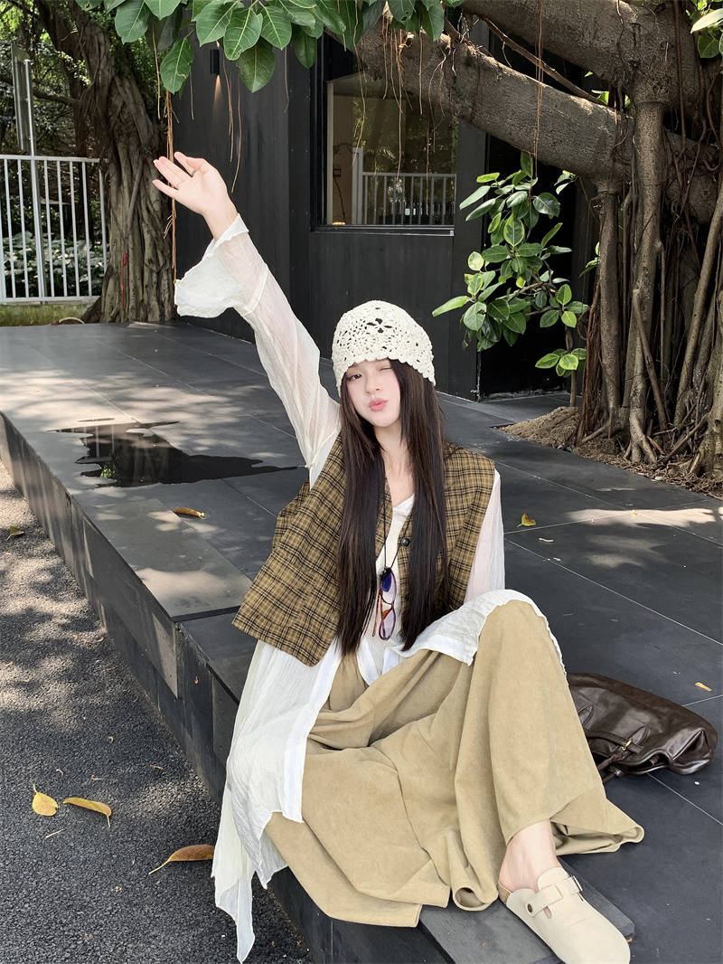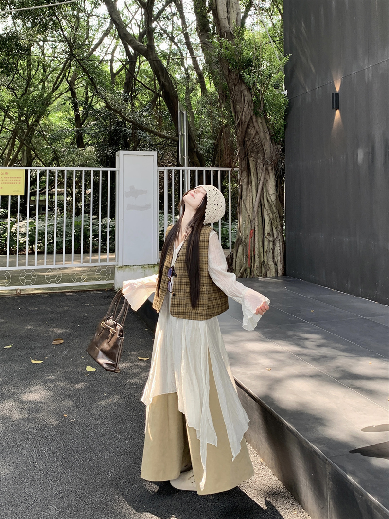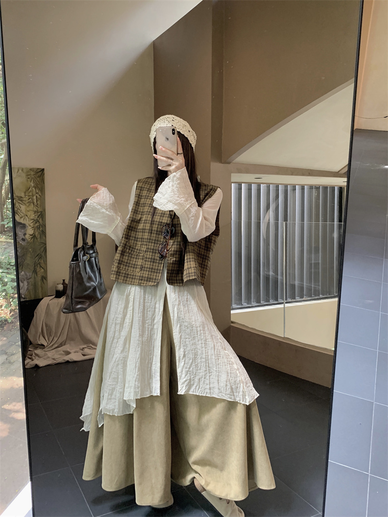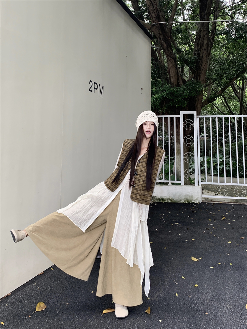 马甲 S肩宽:38cm 胸围:100cm 衣长:48cm M肩宽:39cm 胸围:104cm 衣长:49cm L肩宽:40cm 胸围:108cm 衣长:50cm 衬衣 S肩宽:38cm 胸围:90cm 袖长:64cm M肩宽:39cm 胸围:94cm 袖长:65cm L肩宽:40cm 胸围:98cm 袖长:66cm 裤子 S 腰围:66cm—70cm(松紧腰) 裤长:90cm M腰围:68cm—74cm(松紧腰) 裤长:91cm L腰围:70cm—78cm(松紧腰) 裤长:92cm