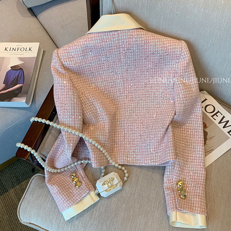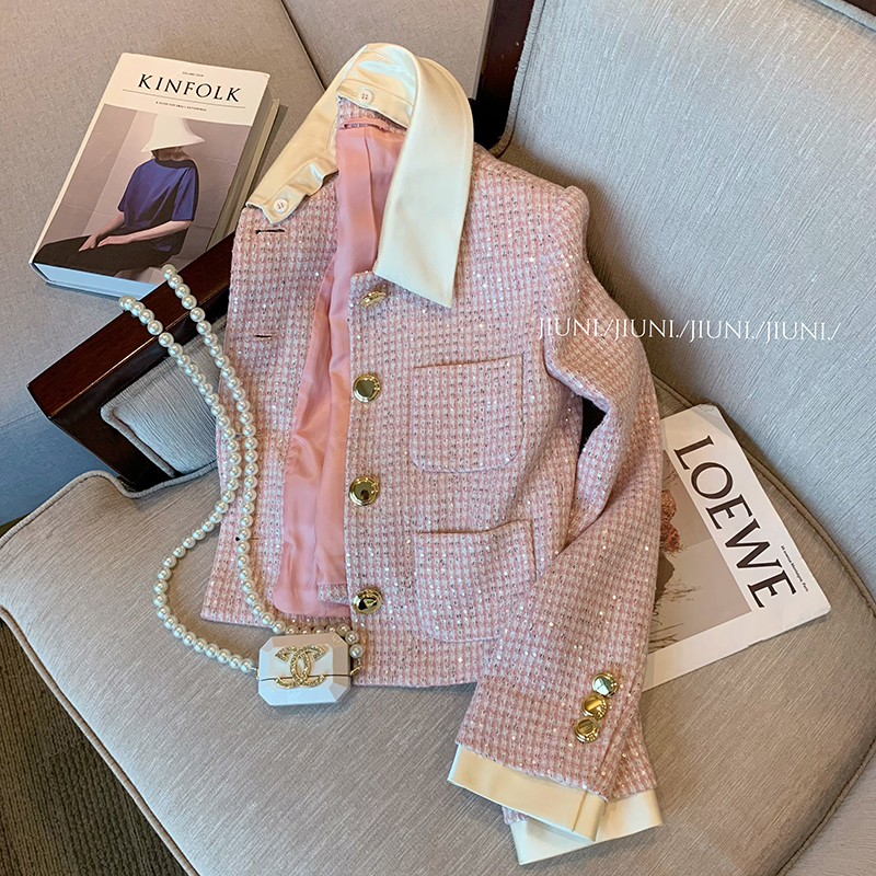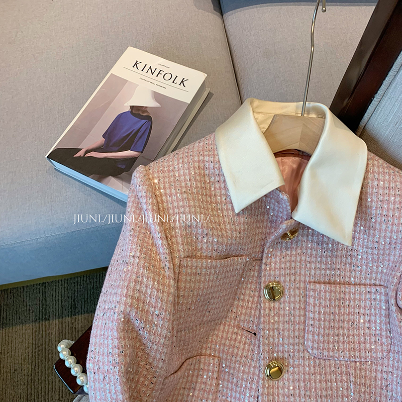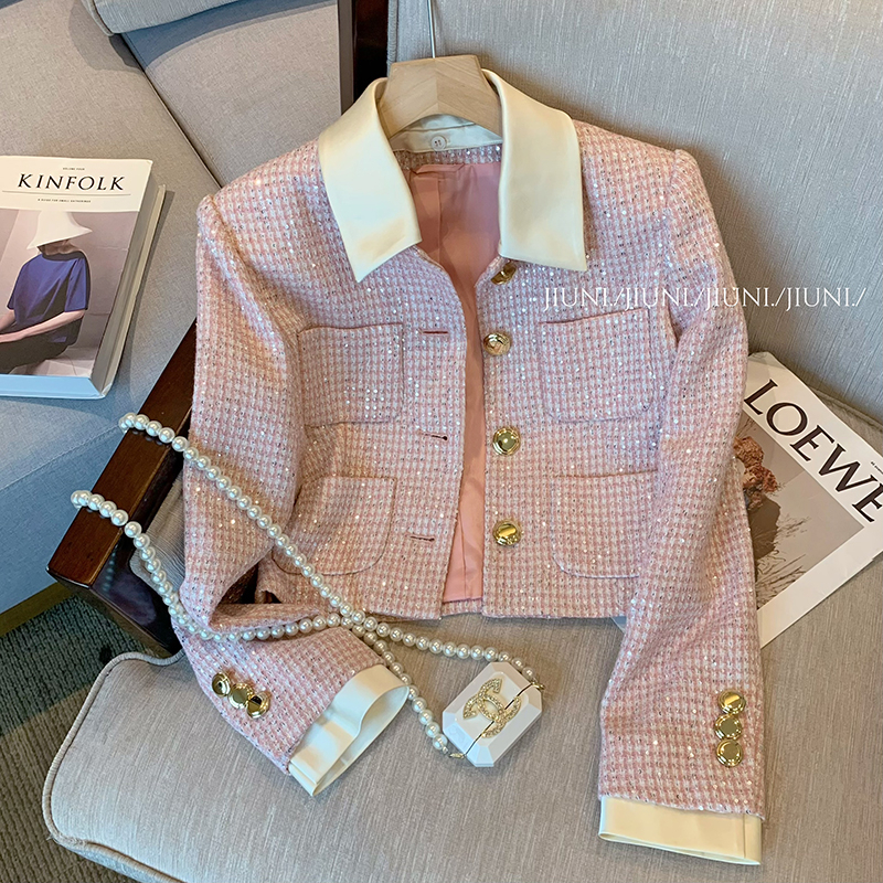 FA41308# 小香风短外套女Polo领秋季别致甜美减龄气质休闲夹克百搭上衣 服裝批發女裝批發服飾貨源
