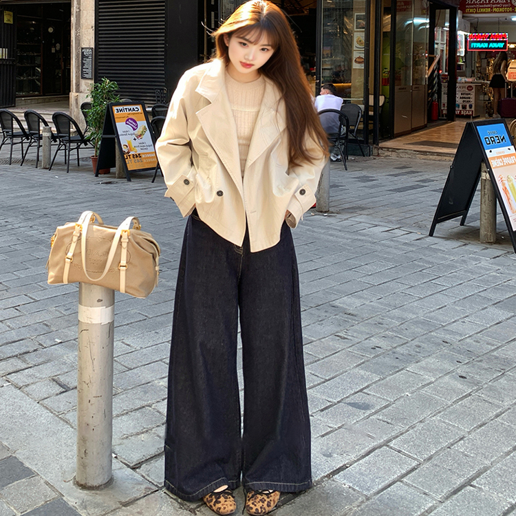 FA42171# 复古长袖立领短款风衣女秋季新款高级感气质显瘦收腰外套上衣