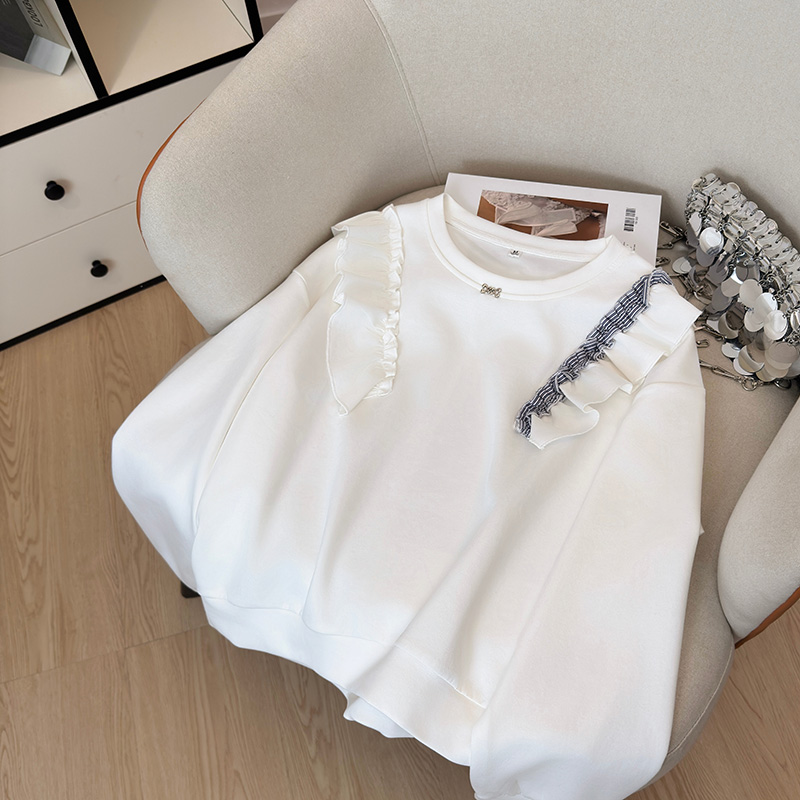 FA42735# 秋新款时尚韩版宽松大气荷叶边圆领卫衣简约气质百搭上衣 服裝批發女裝批發服飾貨源