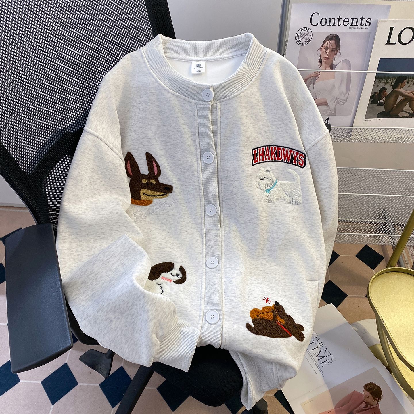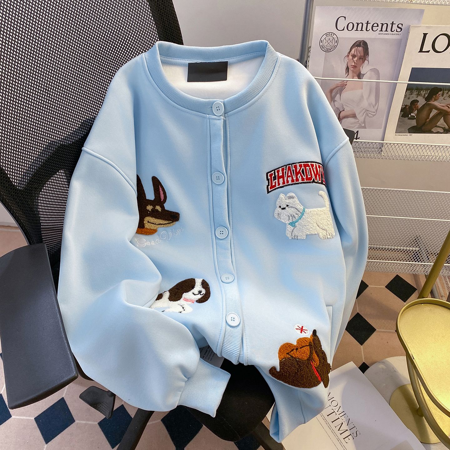 FA43001# 原版刺绣华棉纯棉复合银狐绒—好质量加绒加厚外套卫衣女 服裝批發女裝批發服飾貨源