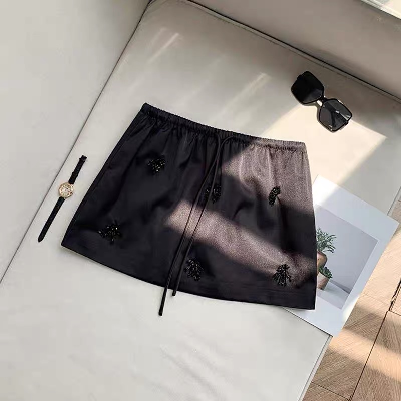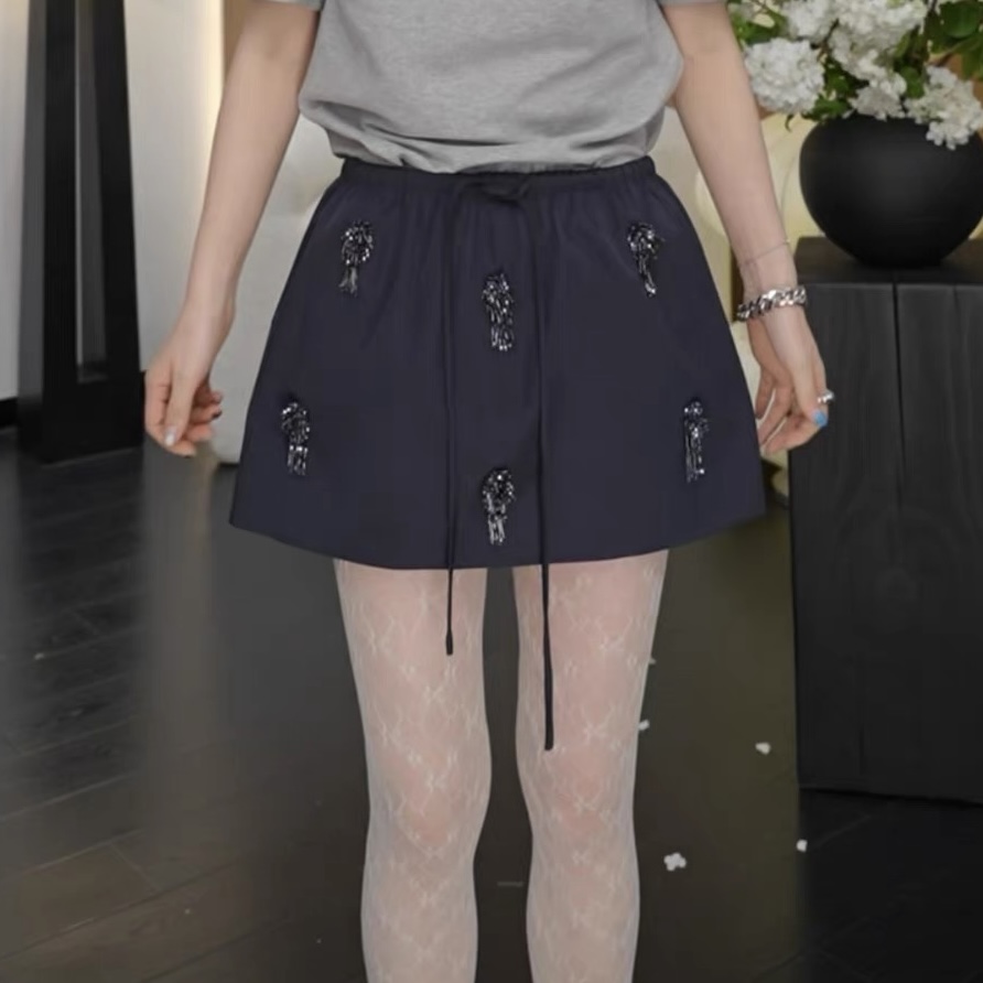 FA43021# 周美美典藏珠语时髦深蓝色手工钉珠抽绳直筒长裙短裙 服裝批發女裝批發服飾貨源