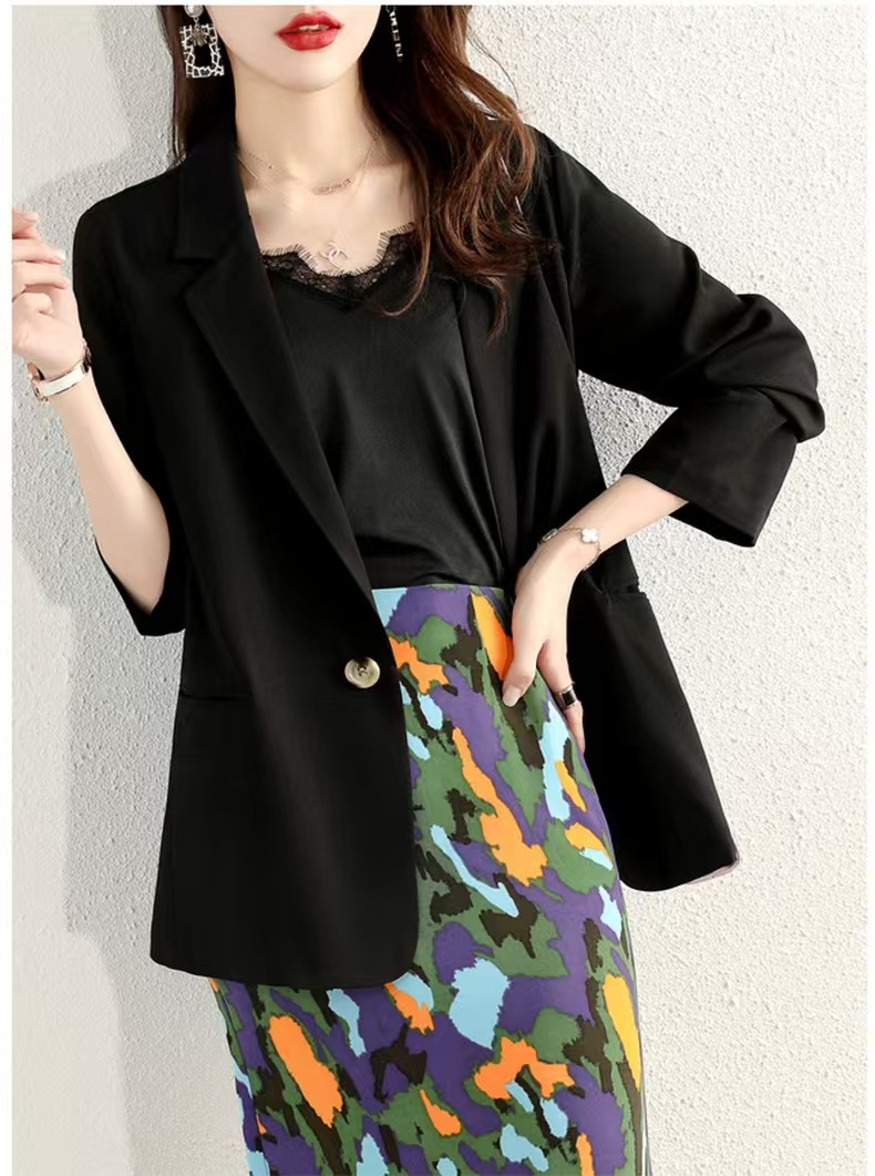 FA43374# 休闲小西装外套女秋新款宽松上衣百搭长袖一粒扣黑色薄款西服 服裝批發女裝批發服飾貨源
