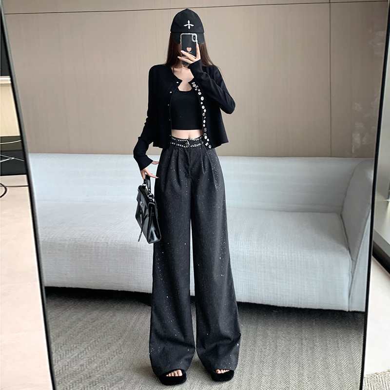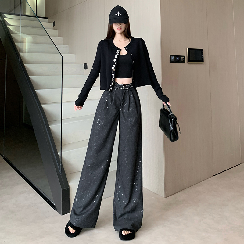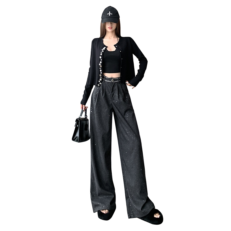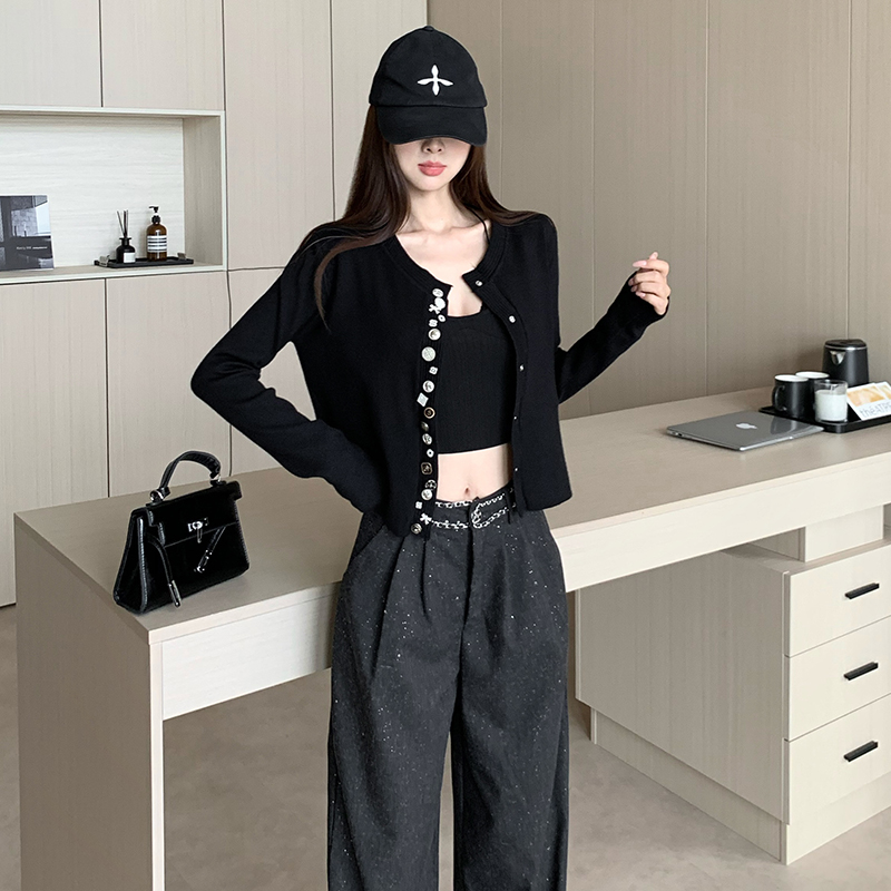 FA43408# 重工纽扣小香风针织外套冬秋修身气质短款开衫高级感黑色毛衣 服裝批發女裝批發服飾貨源