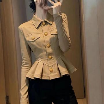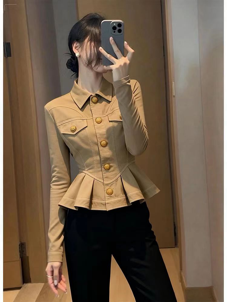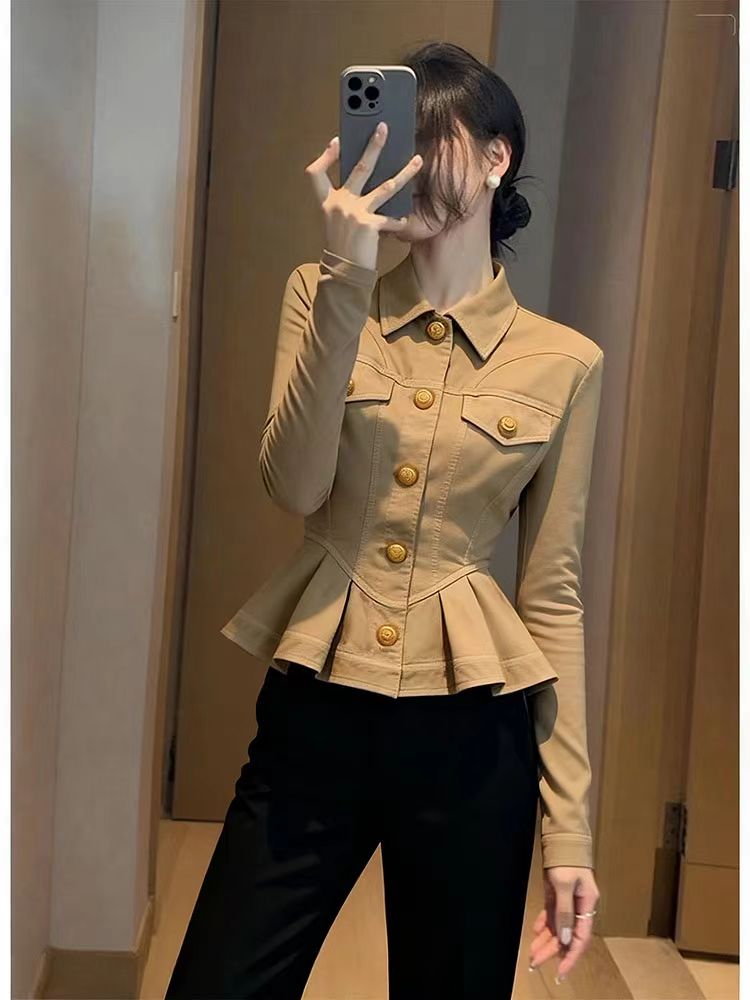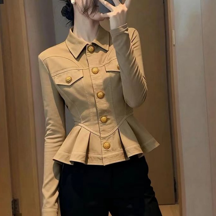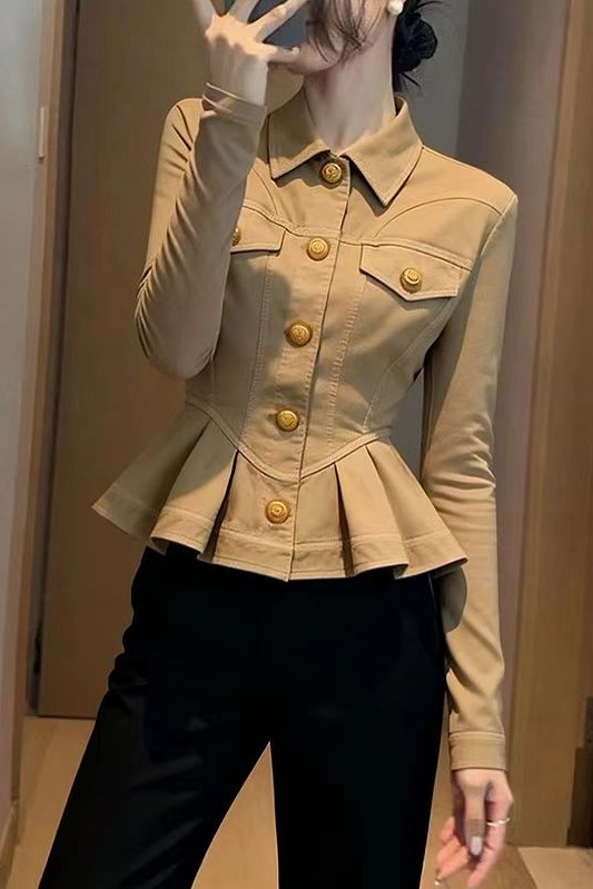 FA43452# 卡其色短款外套女新款秋小个子百搭洋气减龄收腰显瘦掐腰上衣 服裝批發女裝批發服飾貨源