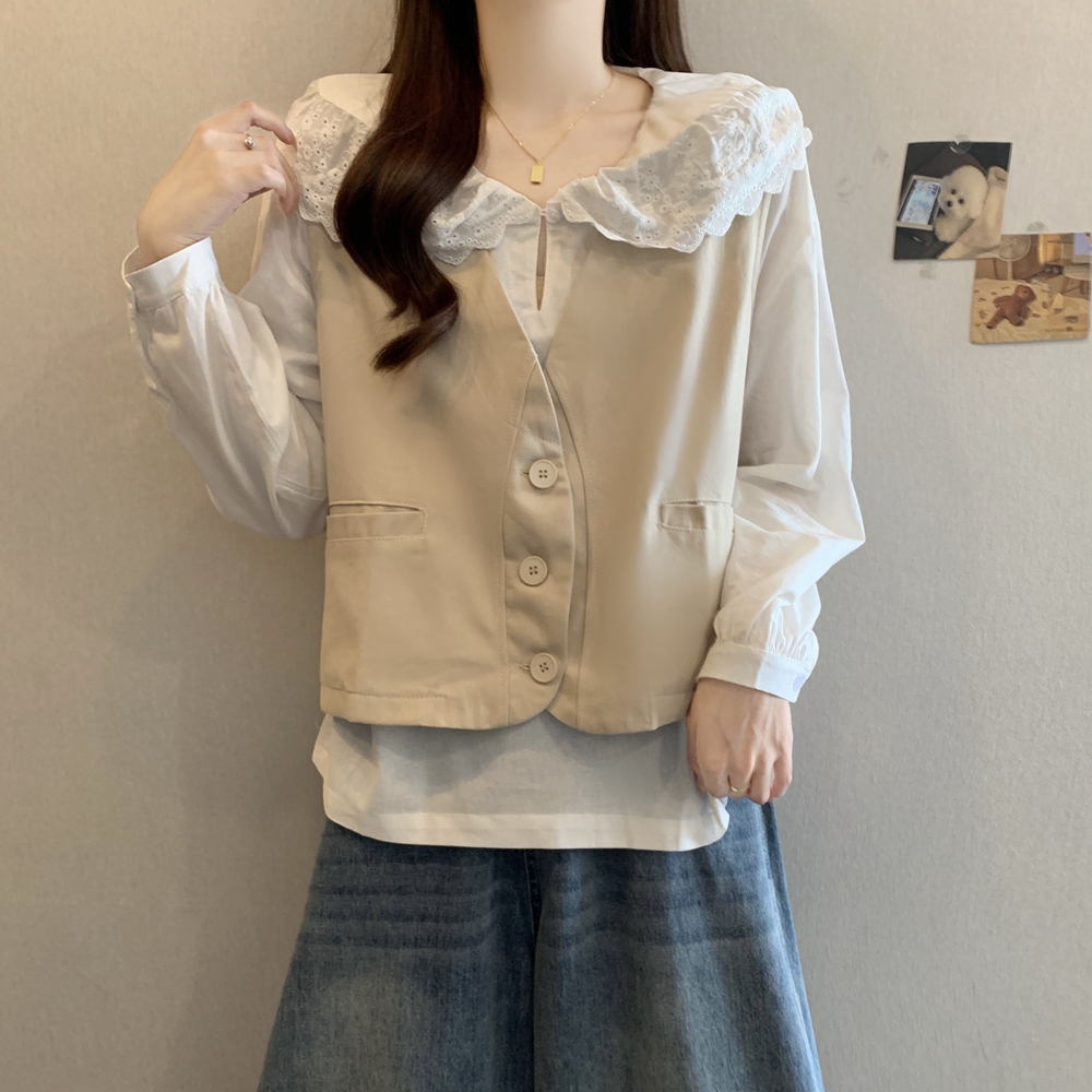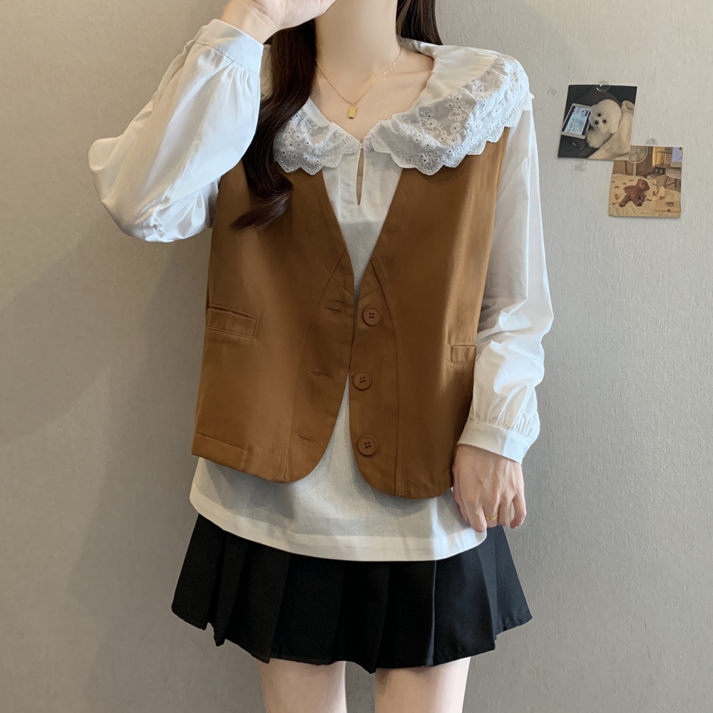 FA43556# 秋装新款棉质马夹外套宽松显瘦v领简约小众设计感工装背心 服裝批發女裝批發服飾貨源
