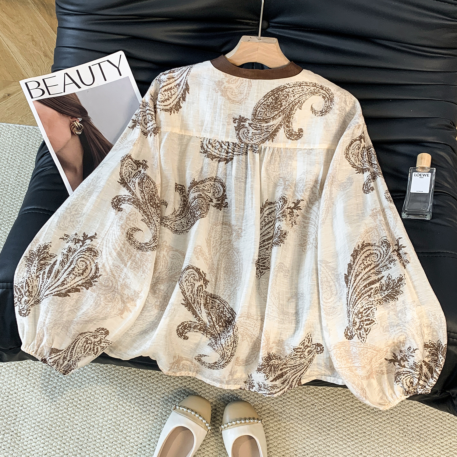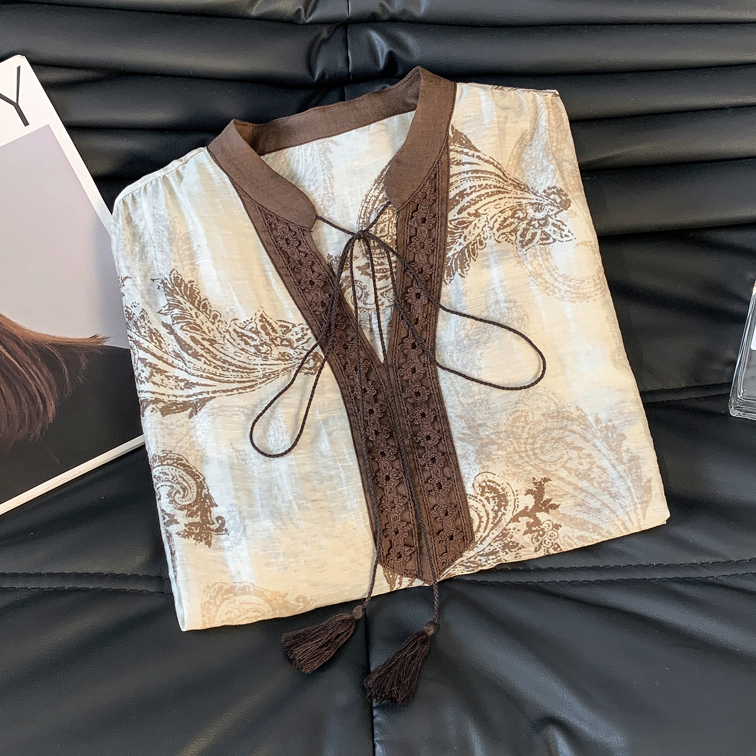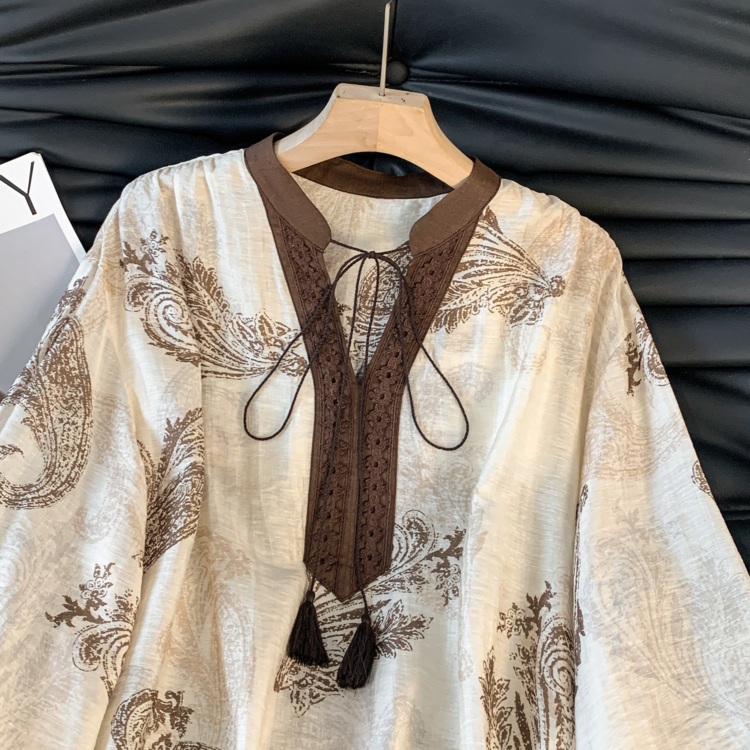 FA43623# 大码时尚波西米亚风棉麻印花长袖拼接立领宽松上衣女 服裝批發女裝批發服飾貨源