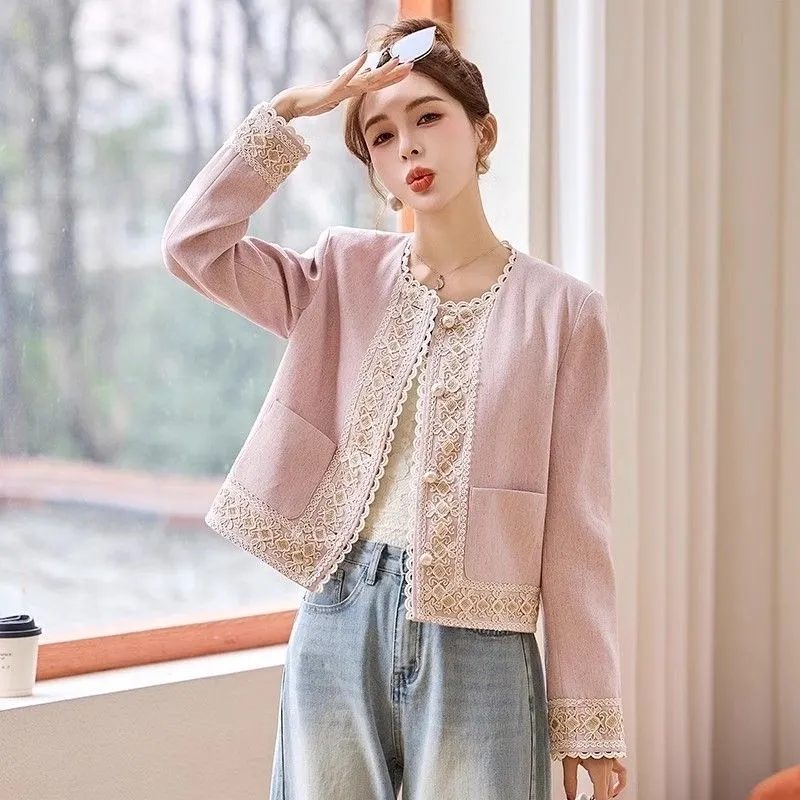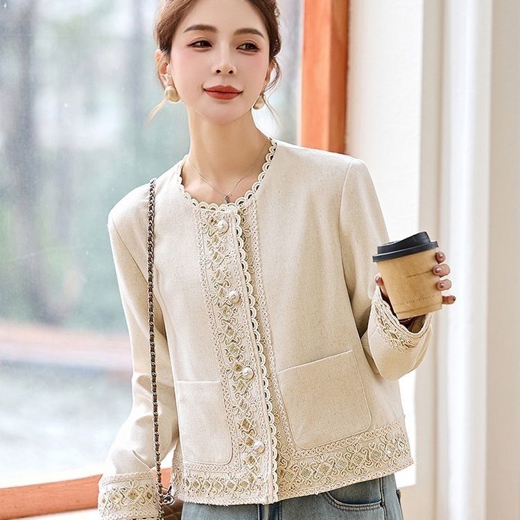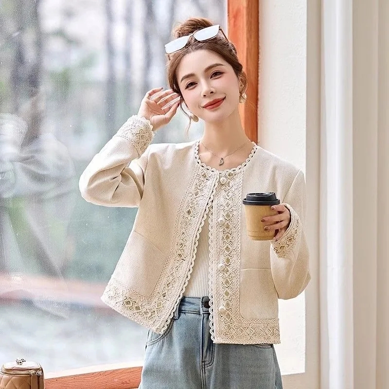 FA43740# 设计感小香风刺绣蕾丝花边外套女秋季新款时尚单排扣气质上衣 服裝批發女裝批發服飾貨源